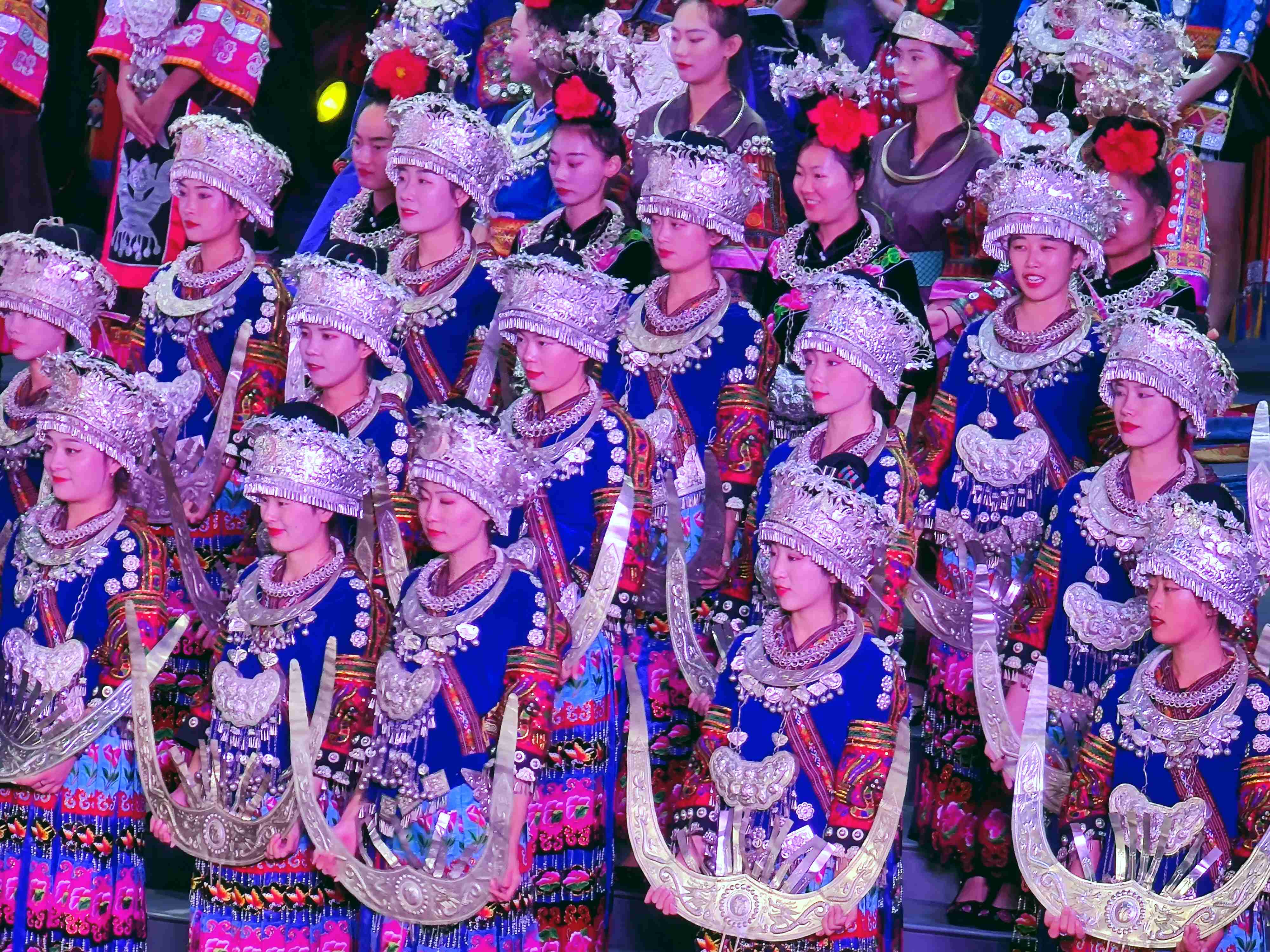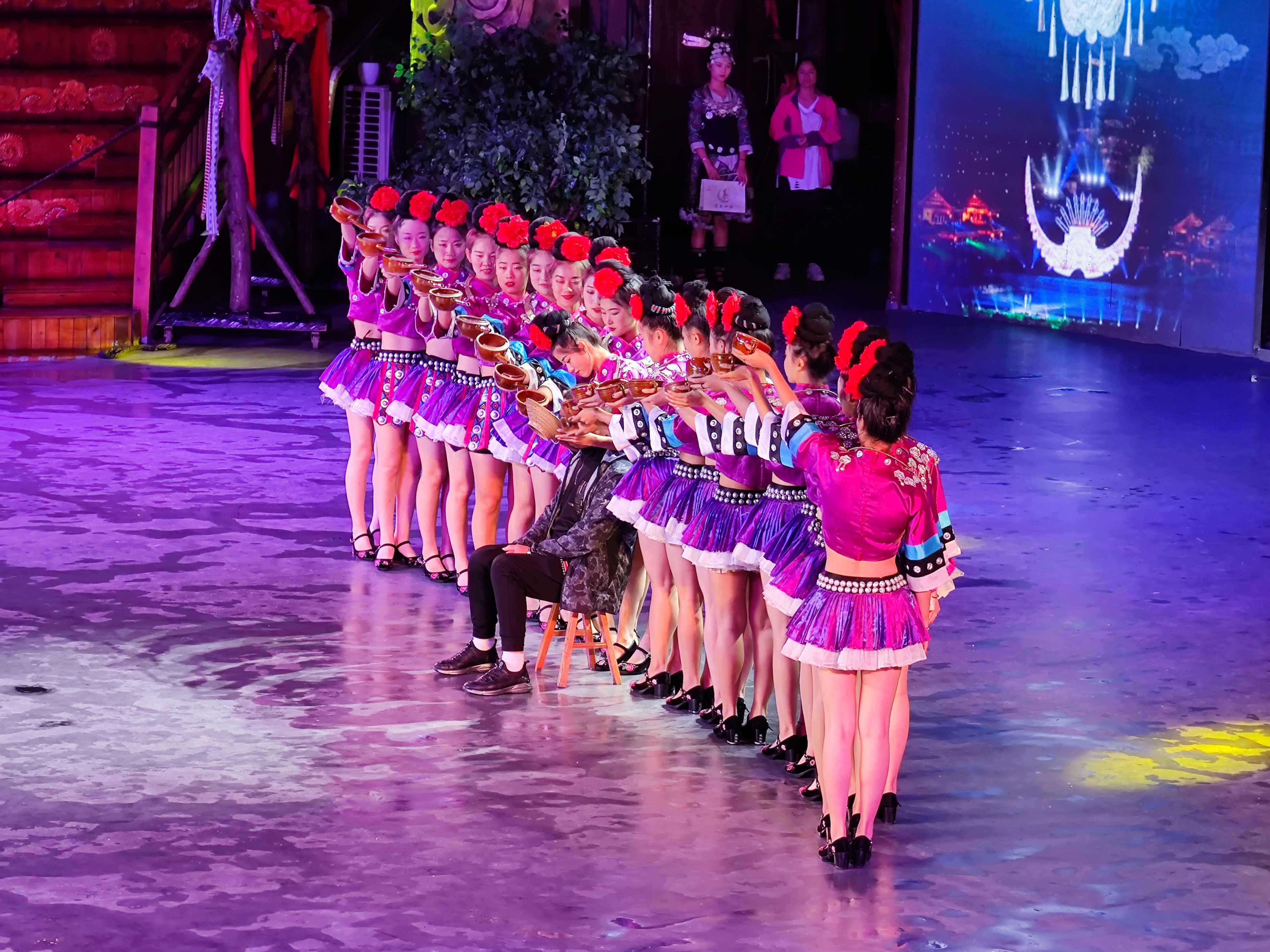 On continue les attractions clichées pour les touristes par le spectacle donné tous les soirs dans l’amphithéâtre. Le spectacle met en scène de nombreux danseurs et conte des histoires Miao. C’est assez kitch et sonne quelque peu creux, mais je reste quand même impressionné par les costumes magnifiques de détail.