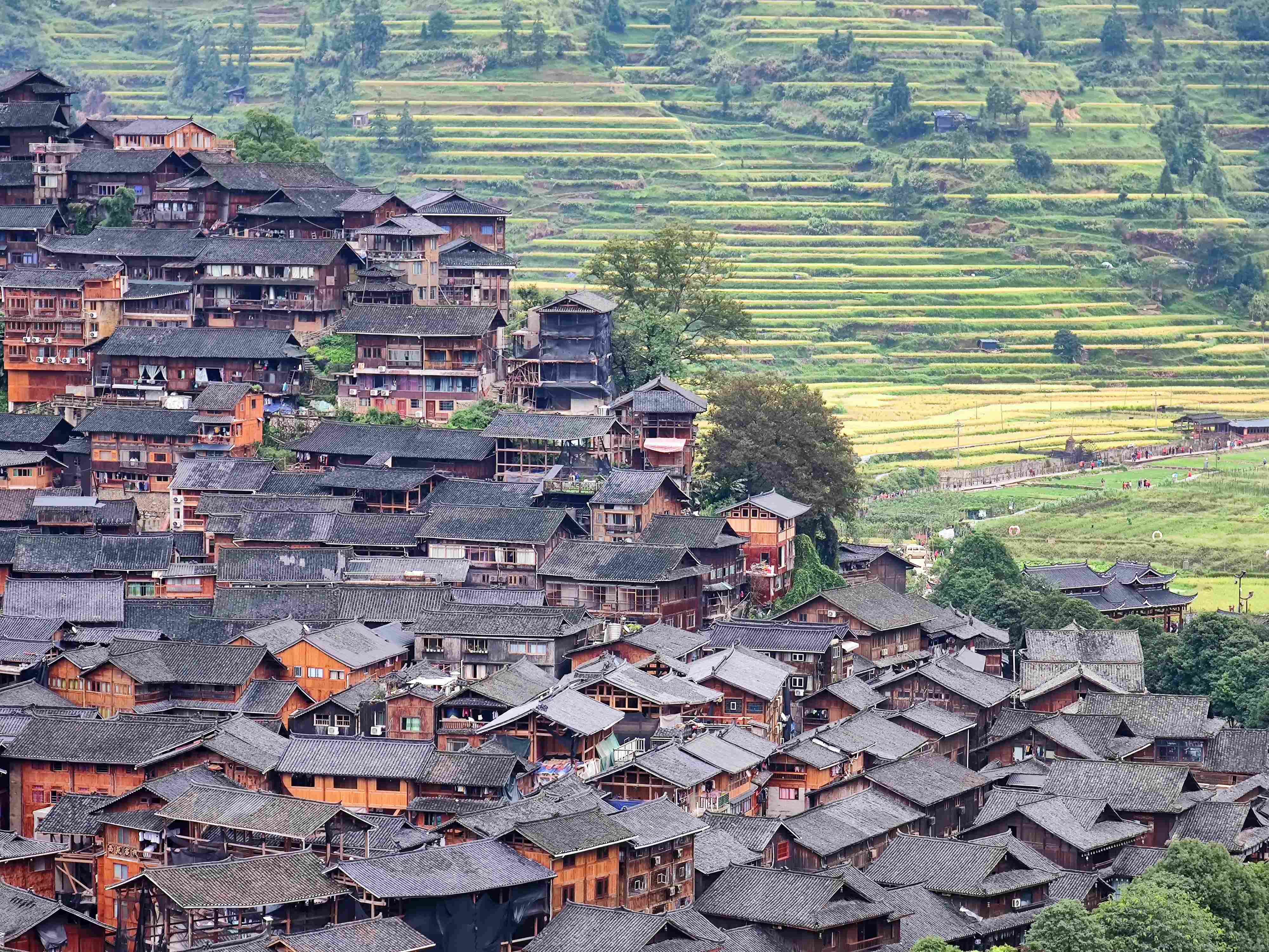 La région du Guizhou dans le Sud Ouest de la Chine fait partie des régions les moins développées du pays, mais aussi une des plus rurales. Le terrain accidenté est magnifique, les montagnes sont presque toujours enveloppées d’un voile nuageux brumeux, la végétation est luxuriante et il pleut beaucoup ici, de nombreuses minorités ont construit des villages et développées leur propre culture pendant des siècles. Le village de Xijiang à proximité de Kaili est le plus gros village de la minorité Miao, construit à flanc de collines, il est déjà très développé pour le tourisme mais permet de découvrir leur culture dans un paysage époustouflant.