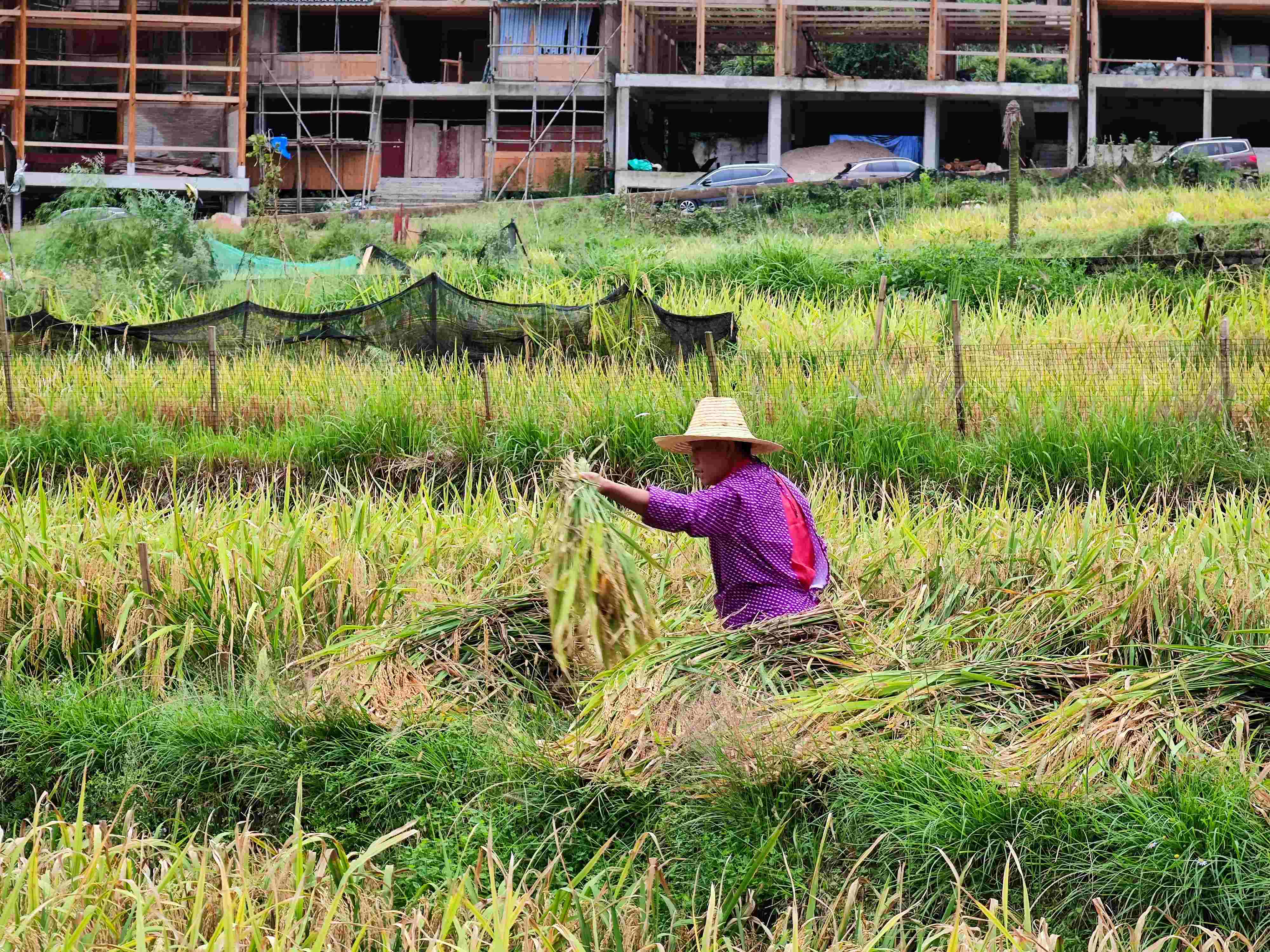 Tout au bout du village, on peut contempler les rizières qui ont viré au jaune et sont prêtes pour la récolte.