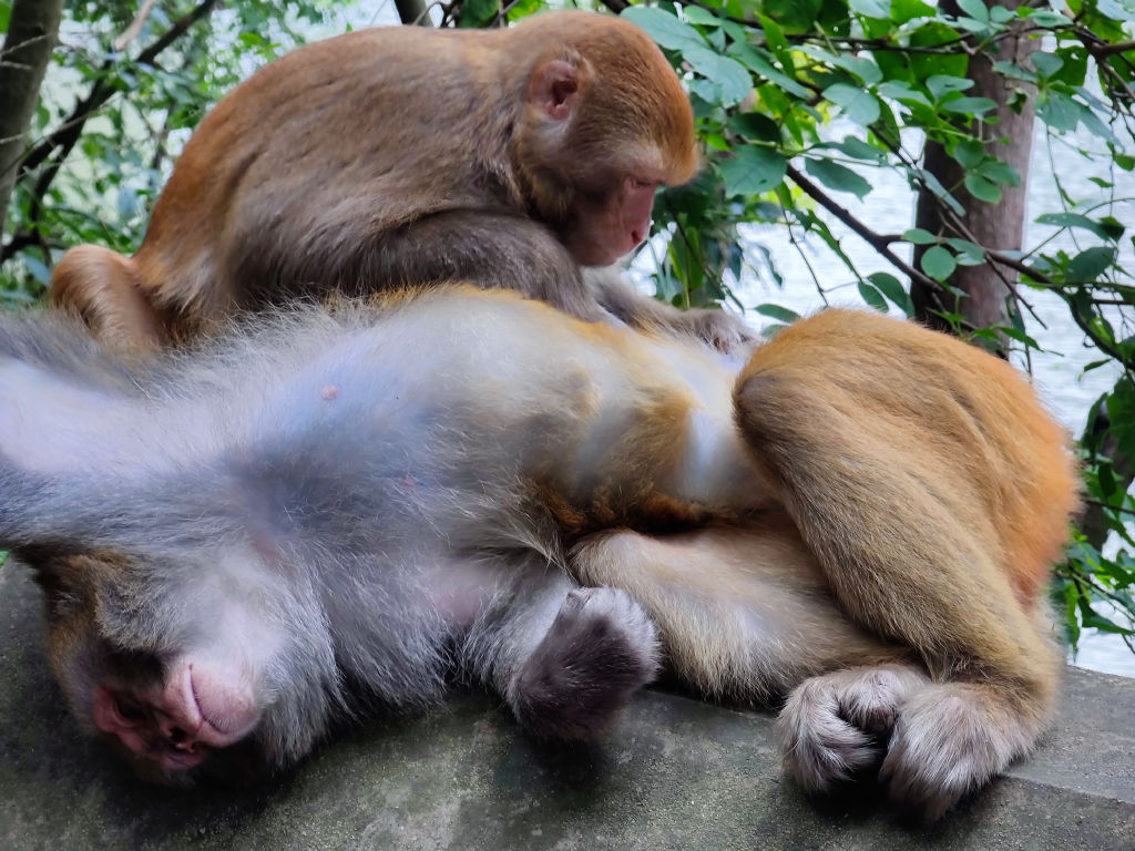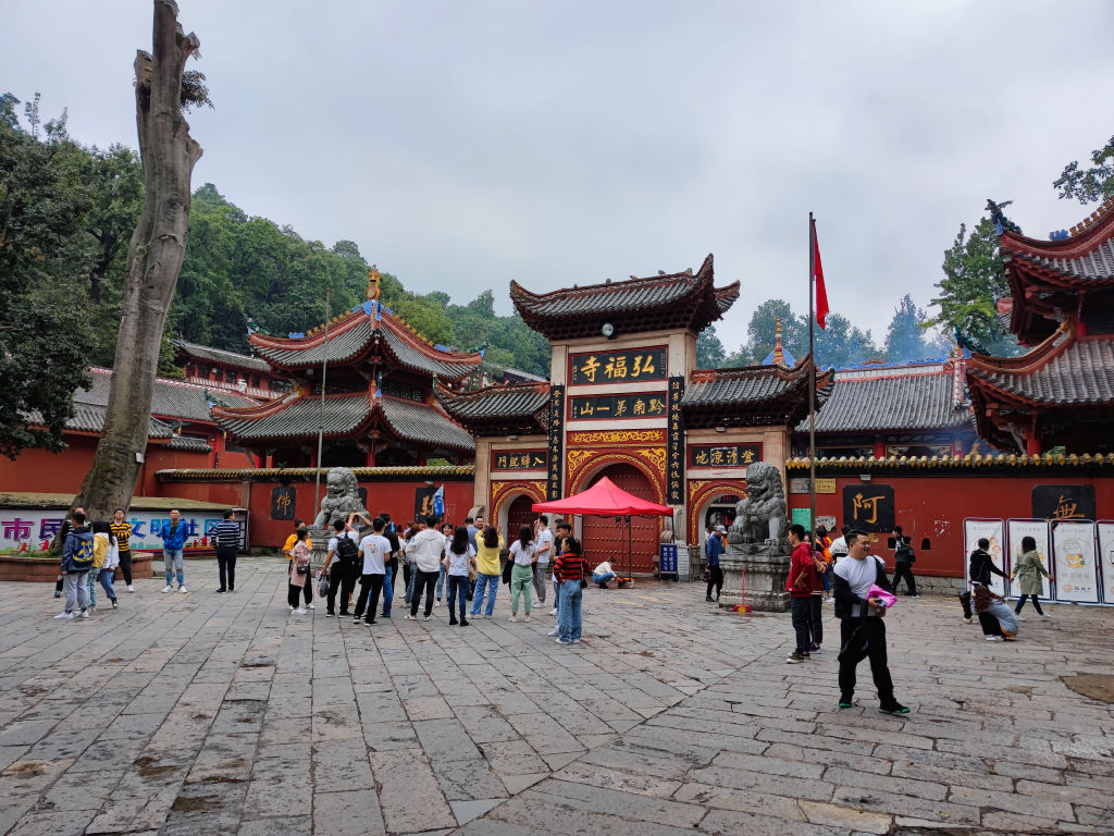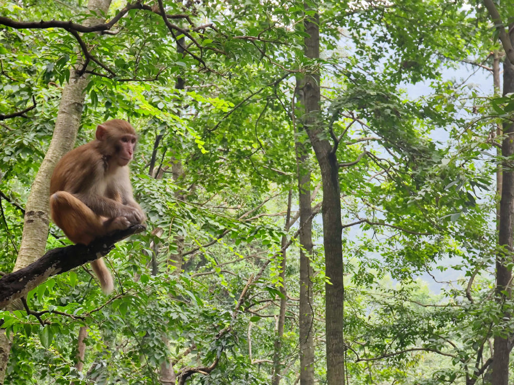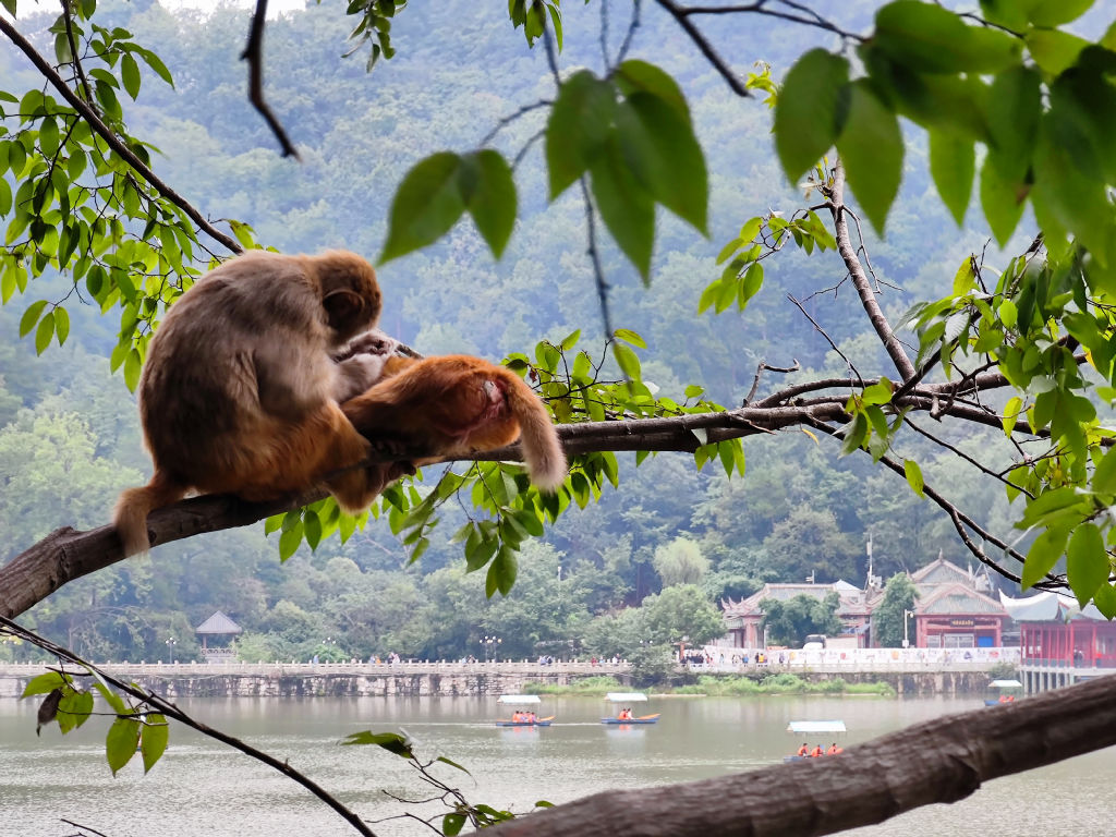 Guiyang est construit au milieu des collines, c’est une ville qui semble plongée dans l’humidité et les nuages couvrent la pointe des plus hauts immeubles de la ville. Cet environnement donne un charme particulier à Guiyang, et l’on peut découvrir plusieurs ouvrages de génie civils impressionnants (avec un drone). Néanmoins, nous souhaitons nous rendre dans un parc assez particulier, en ville, qui abrite une grande colonie de singes connus pour leur roublardise. Le parc de Qianlingshan est construit autour d’un lac et d’un grand temple bouddhiste édifié dans la montagne, le temple de Hongfu.