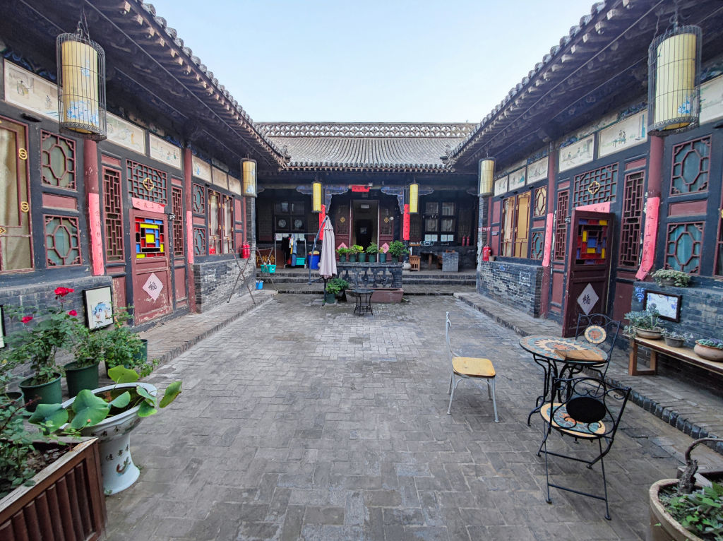 Les différents bâtiments sont tous articulés autour d’une cour intérieure typique des Siheyuan du nord de la Chine.