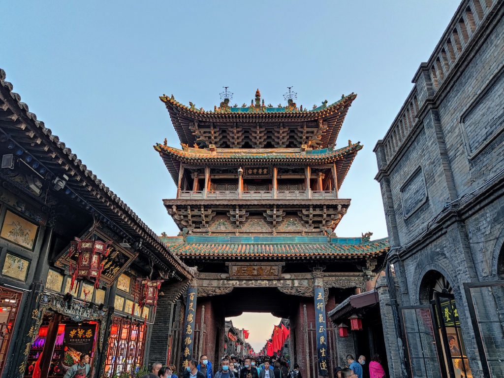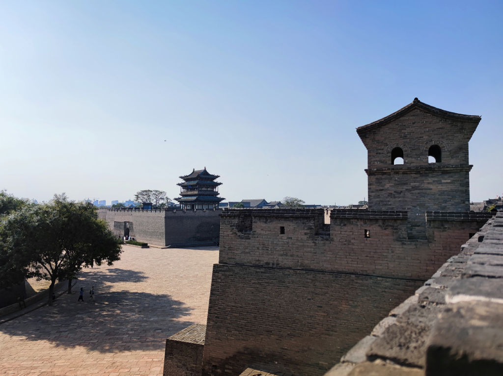 En cette période spéciale de COVID, le plan initial pour partir en Asie du Sud Est comme chaque année est annulé. Il est fortement déconseillé de sortir du territoire chinois, sous peine de refaire une quarantaine dans un hôtel miteux de Shanghai. Je compte quand même profiter de ces quelques jours pour découvrir des nouveaux endroits, malgré le fait que tout le monde a envie de la même chose au même moment, rendant le voyage en période de congés nationaux très éprouvant parfois. Je décide de partir en direction de la région du Shanxi dans le Nord de la Chine. Cette région est réputée pour son histoire, la richesse de son patrimoine culturel, bastion chinois proche de la frontière du passé, des steppes de Mongolie et de ses guerriers sans pitié. Je pars de Hangzhou tôt avec un vol matinal en direction Taiyuan, la capitale de la province du Shanxi. Je ne m’arrête pas dans cette grande ville et je file directement vers la ville impériale de Pingyao. Les transports sont vraiment pratiques depuis l’aéroport, un bus direct emmène les quelques voyageurs directement du parking de l’aéroport à l’entrée de la ville. Il suffit ensuite de prendre un taxi jusqu’aux portes de la ville fortifiée. Pingyao est en effet encerclé par une imposante muraille sur laquelle sont érigées des tours de guets.