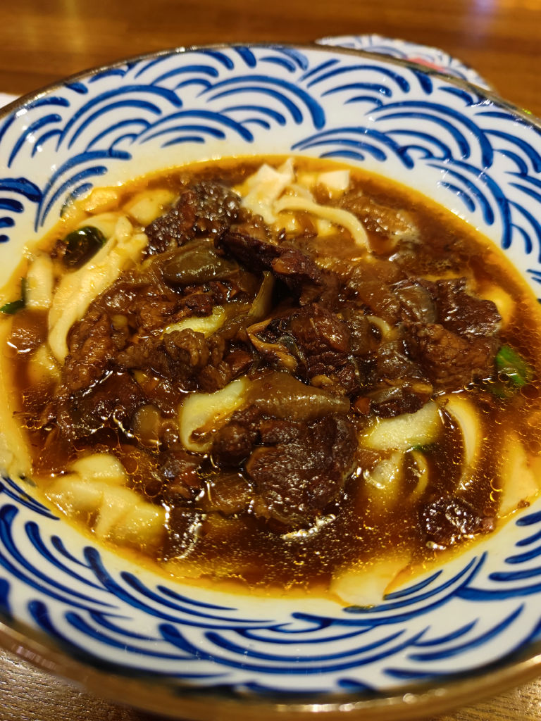 On peut goûter les spécialités du Shanxi dans la touristique Pingyao, en premier lieu desquelles on a les 削面 pâtes coupées, le vinaigre, le bœuf séché, il y a aussi un alcool très connu mais ça je ne le goûterait pas. Un restaurant semble avoir une certaine réputation ici, mon aubergiste me l’a recommandé et c’est très bon.