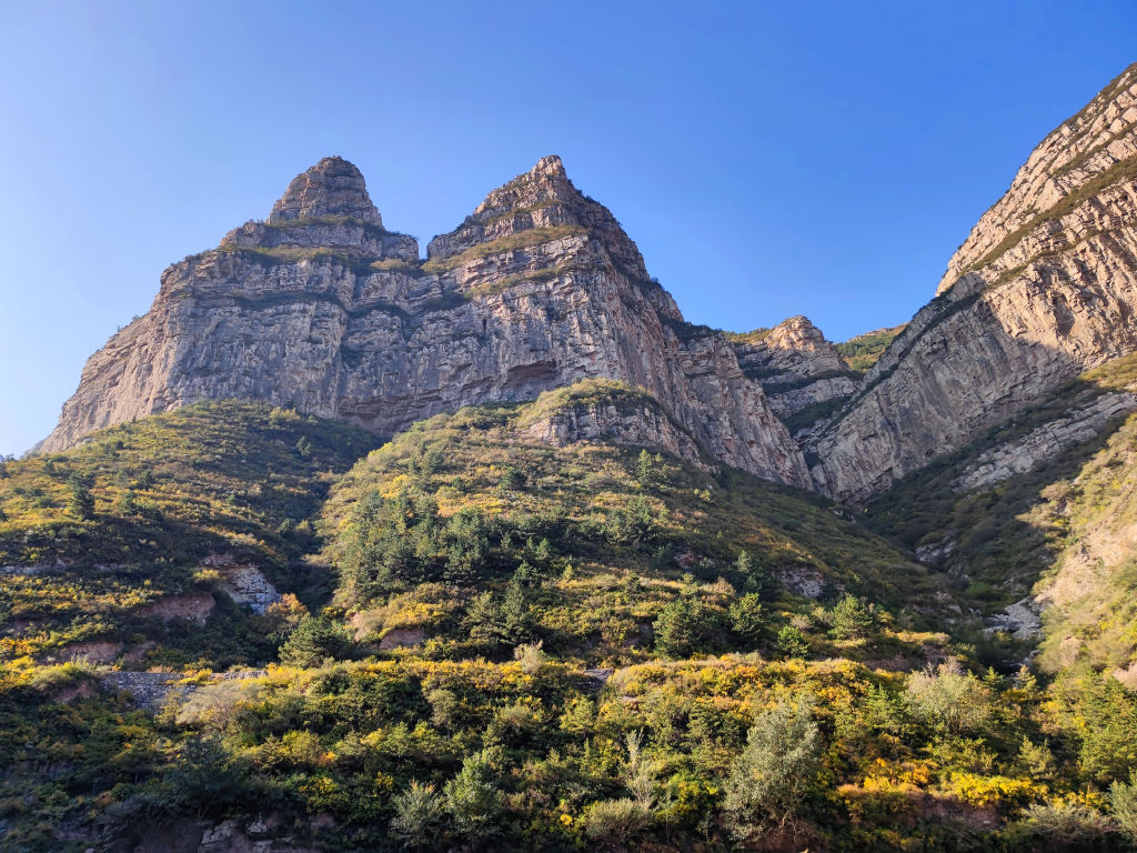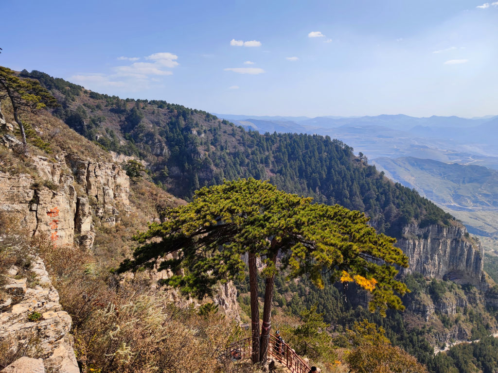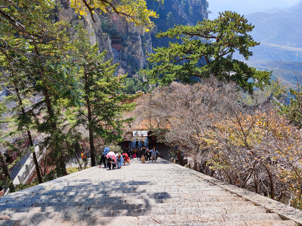 Ce matin je pars très tôt en direction de Hengshan, à une heure et demi de route en direction du Sud. Hengshan fait partie du groupe des 5 montagnes classiques directrices de la Chine, avec Taishan, Huashan, Hengshan (homonymes), et Songshan. Ce sont les Wuyue 五岳. Hengshan est donc la montagne qui représente le Nord, c'est Beiyue. On traverse la campagne du Shanxi jusqu’au village de Hengyuan. Ici il faut garer la voiture dans l’immense parking aménagé pour les vacances chinoises. Puis une navette nous dépose au pied de la montagne. C’est très bien organisé, le parking est d’une dimension incroyable mais comme il est très tôt il n’y a pas encore trop de monde. Avant d’aller à Hengshan, je me rends à Xuankongsi, sot le temple suspendu. Il est enserré dans cette vallée verticale.