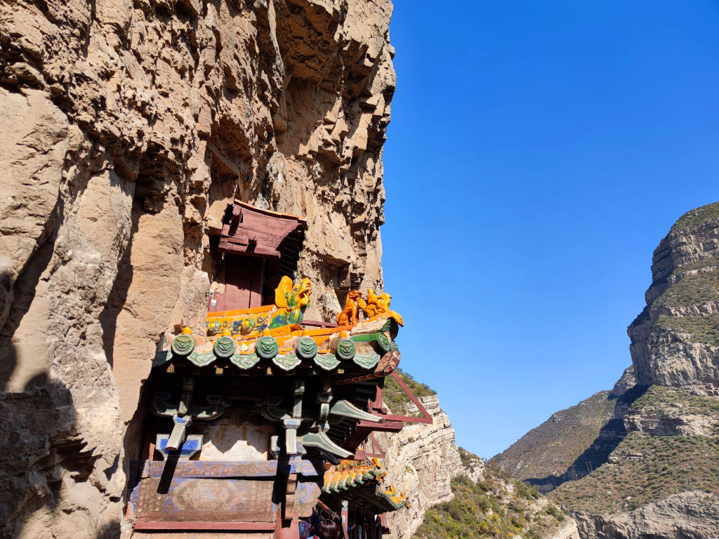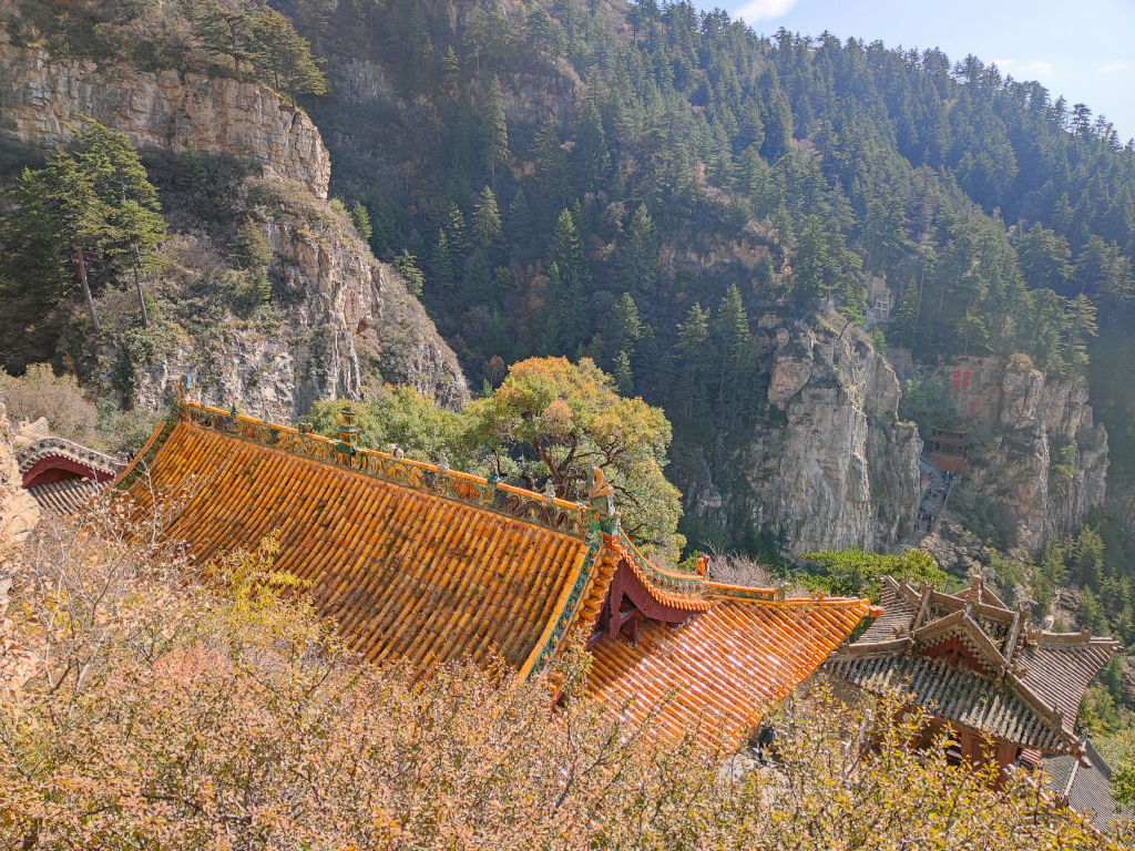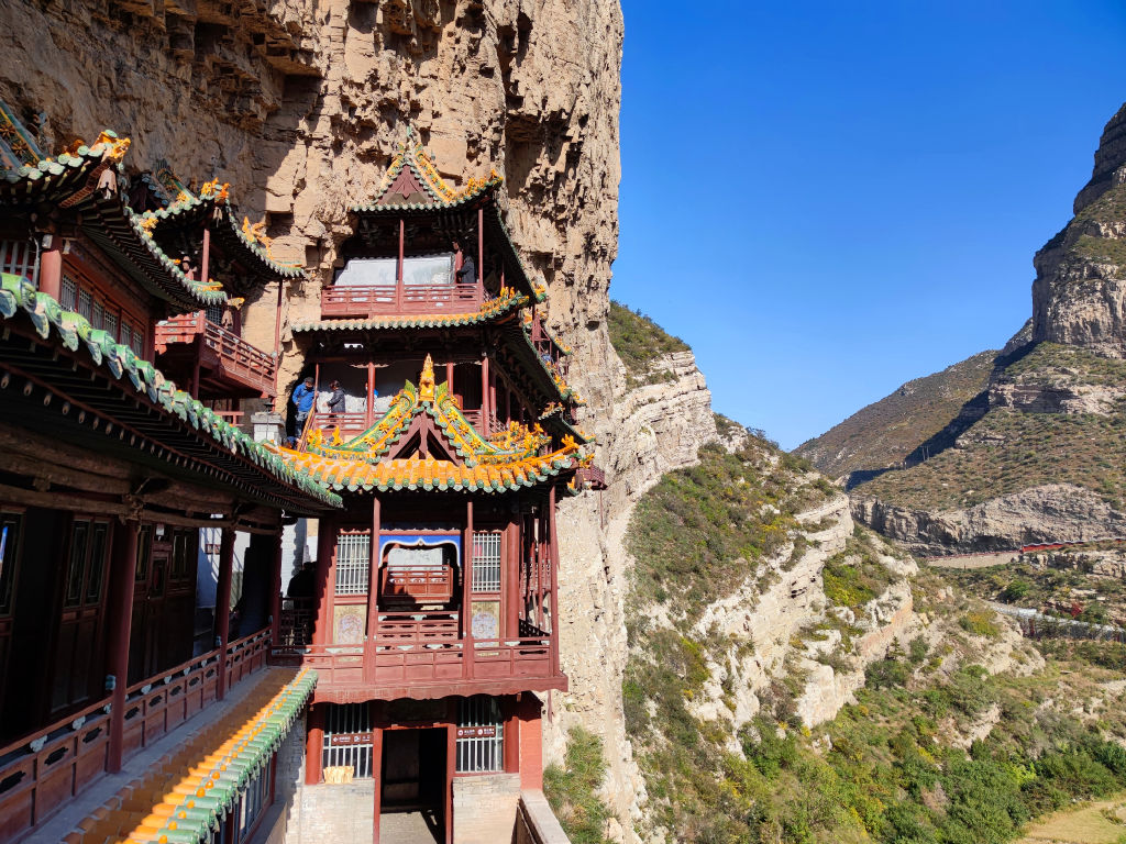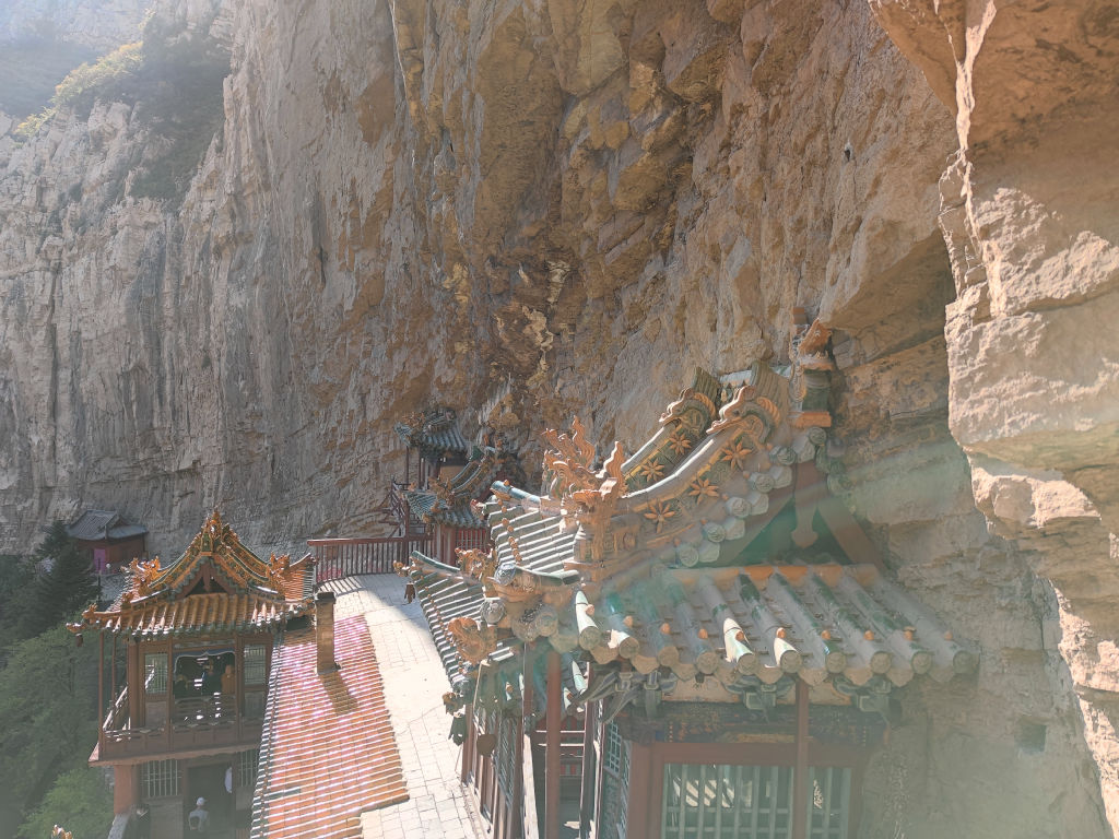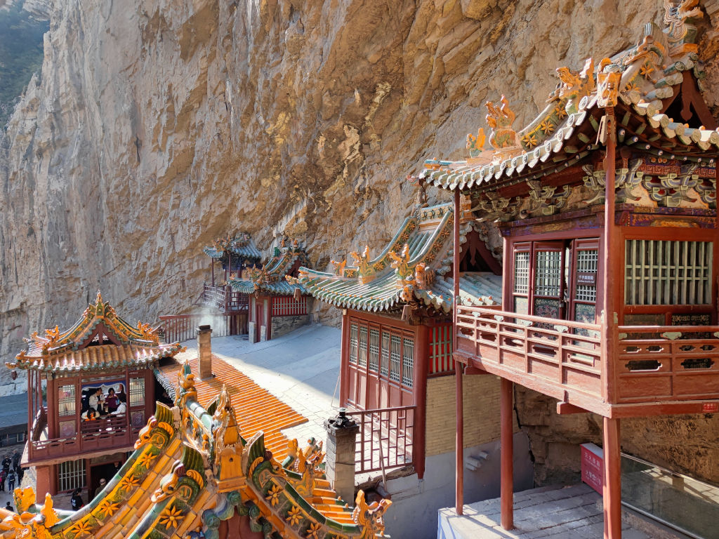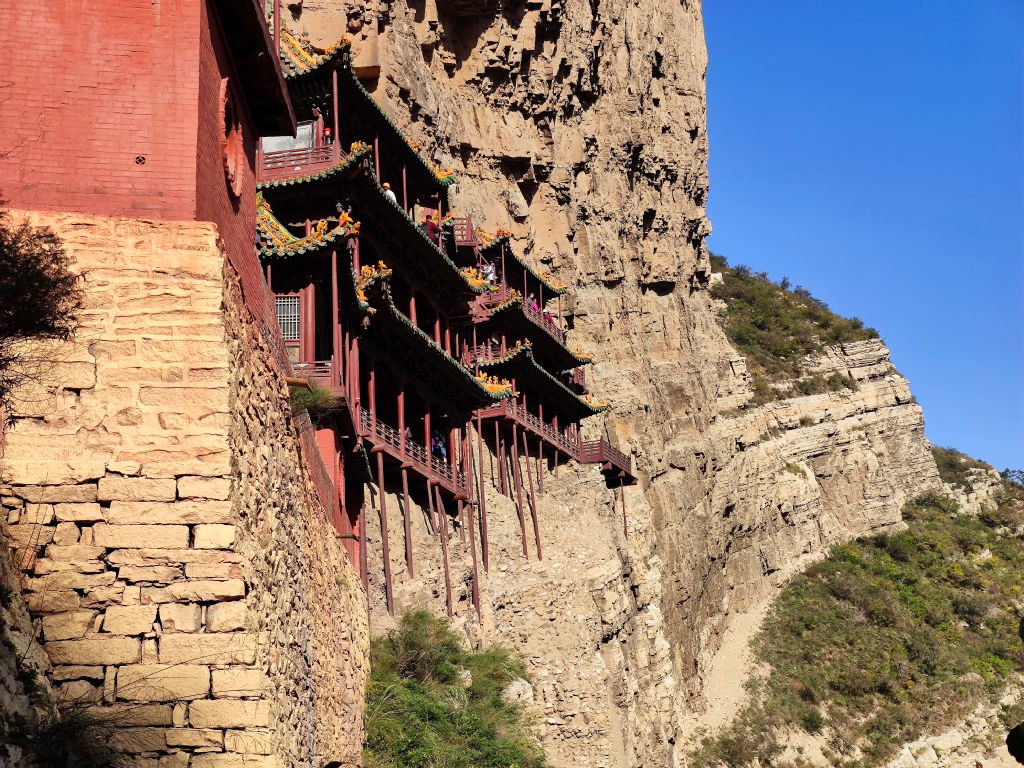 Ce temple est une splendeur du Shanxi. Accroche à la falaise par des piliers en bois, il semble suspendu au dessus du vide.