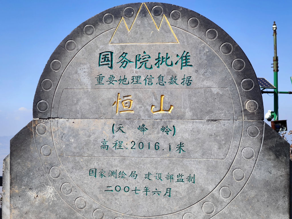 J'arrive à la borne qui indique le sommet de Hengshan Beiyue et l'altitude de 2006,1mètres. Il y a beaucoup de gens qui font la queue pour se prendre en photo avec la borne
