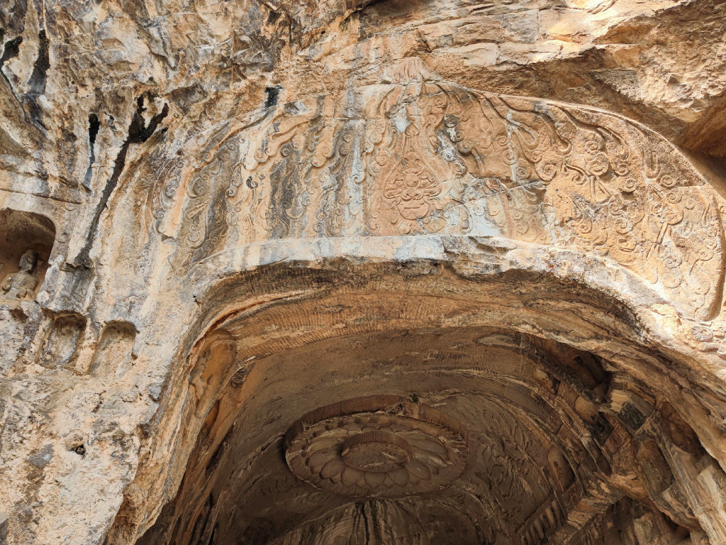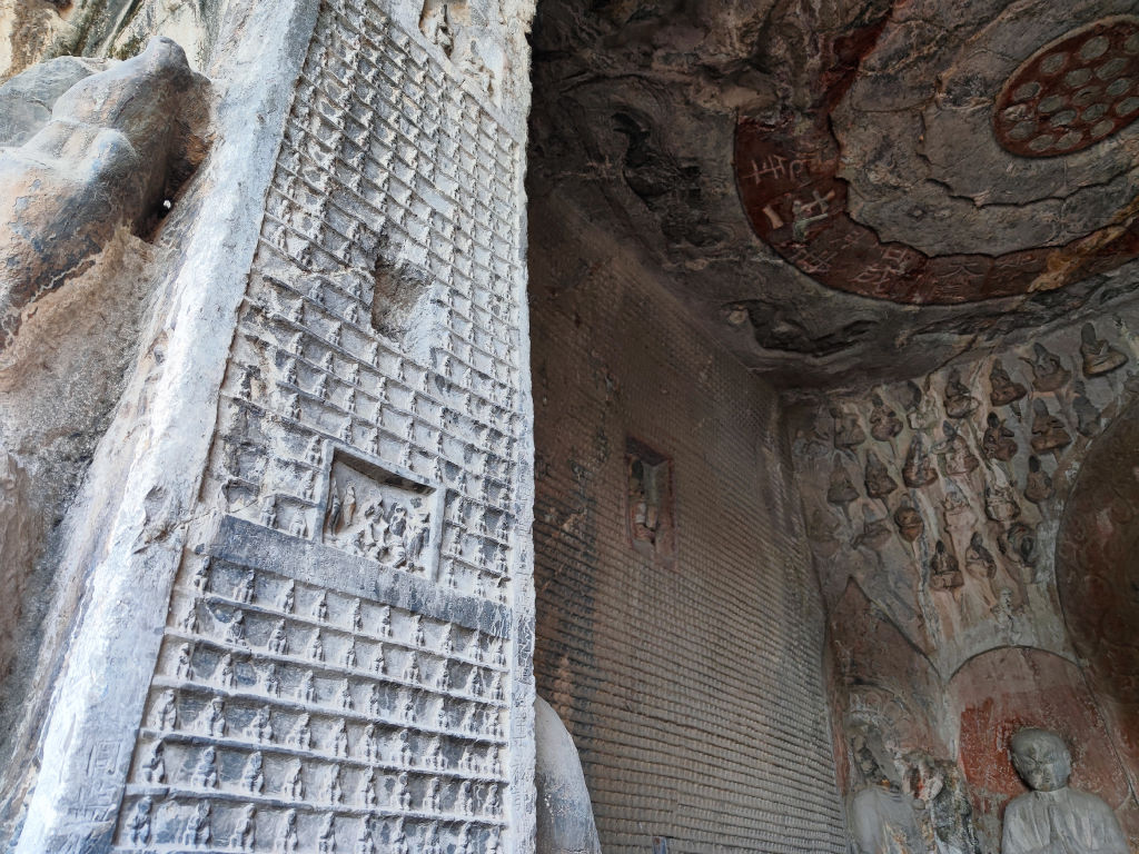 Ici, on est tout au bout de la chaine de montagne de Songshan. Ce détail est d’importance, Songshan étant considérée comme la montagne du centre du monde chinois antique. C’est donc un emplacement de choix de venir creuser ces grottes dans la montagne du centre, au Sud de la capitale ! Le cadre est en tout cas bucolique, le fleuve traverse ce relief en son cœur, le soleil brille, j’aperçois même un aigle.