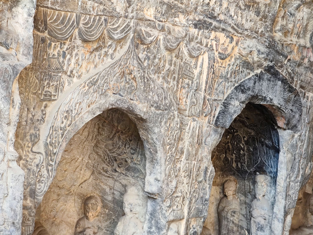 Il existe plusieurs styles à Luoyang, on trouve des caves de l’époque des Wei du Nord, des Sui et des Tang particulièrement. Les formes, les visages et les techniques ont évolué au fil du temps.