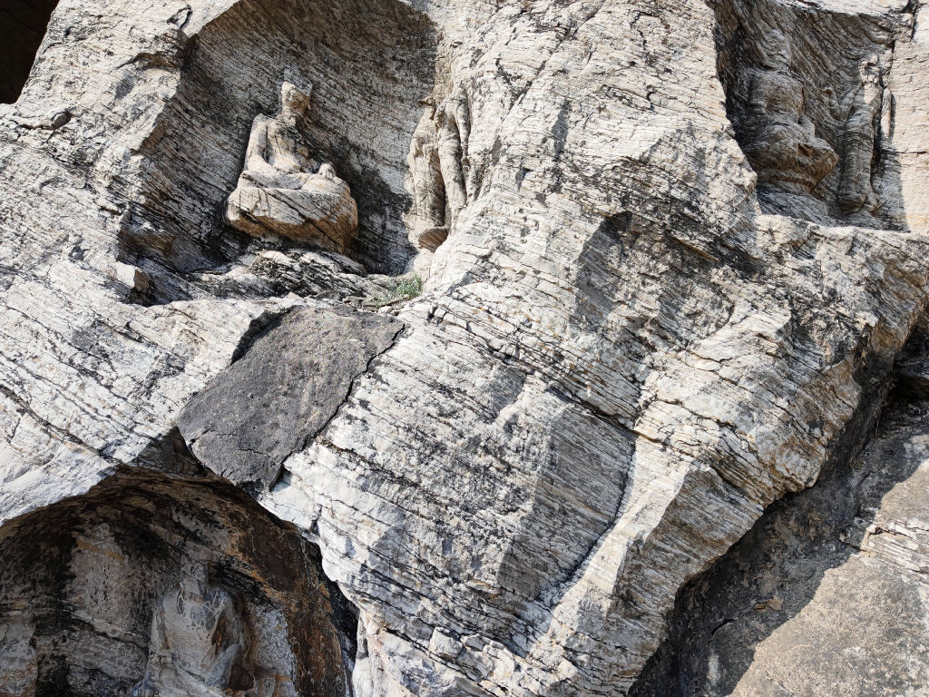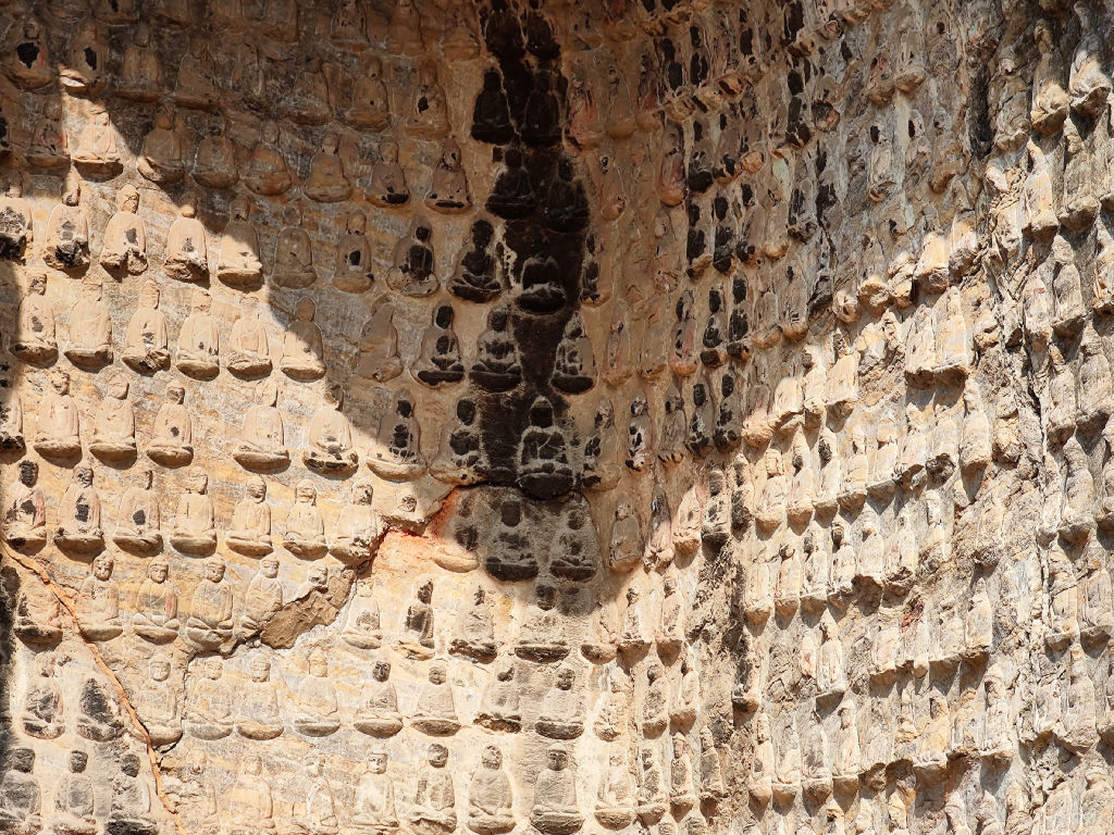 On remarque pleins de détails, comme ces bouddhas gravés en tout petit dans la roche.