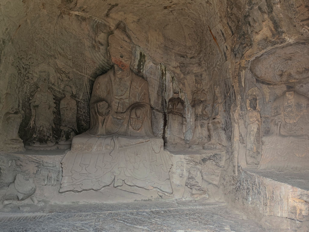 La pièce maitresse des grottes de Longmen, c’est le Bouddha géant, commandé par l’empereur qui s’admire après avoir monté un long escalier. Il est accompagné de 7 personnages mythiques de la tradition Bouddhiste.