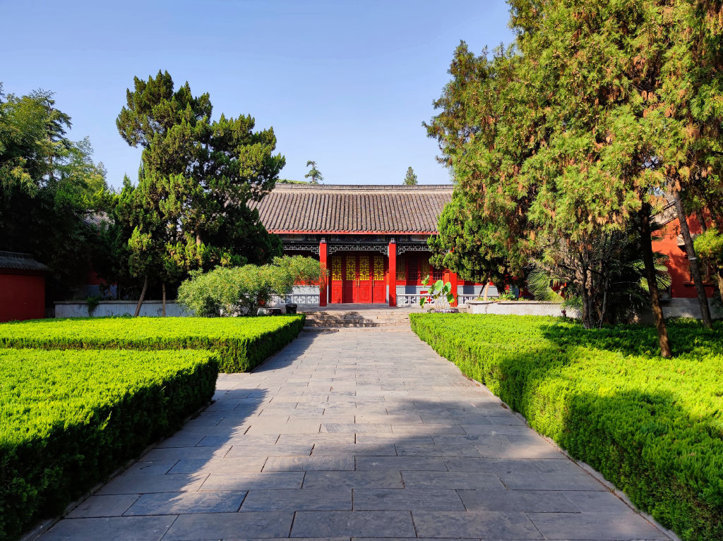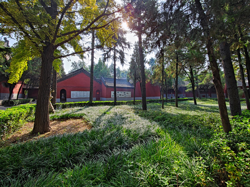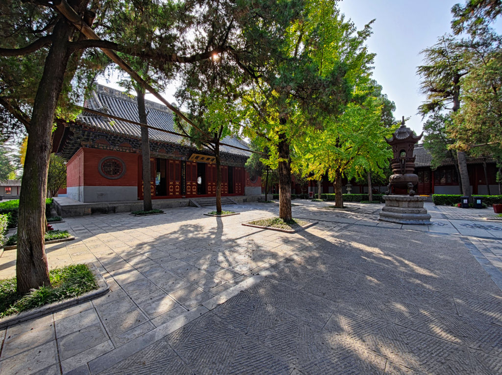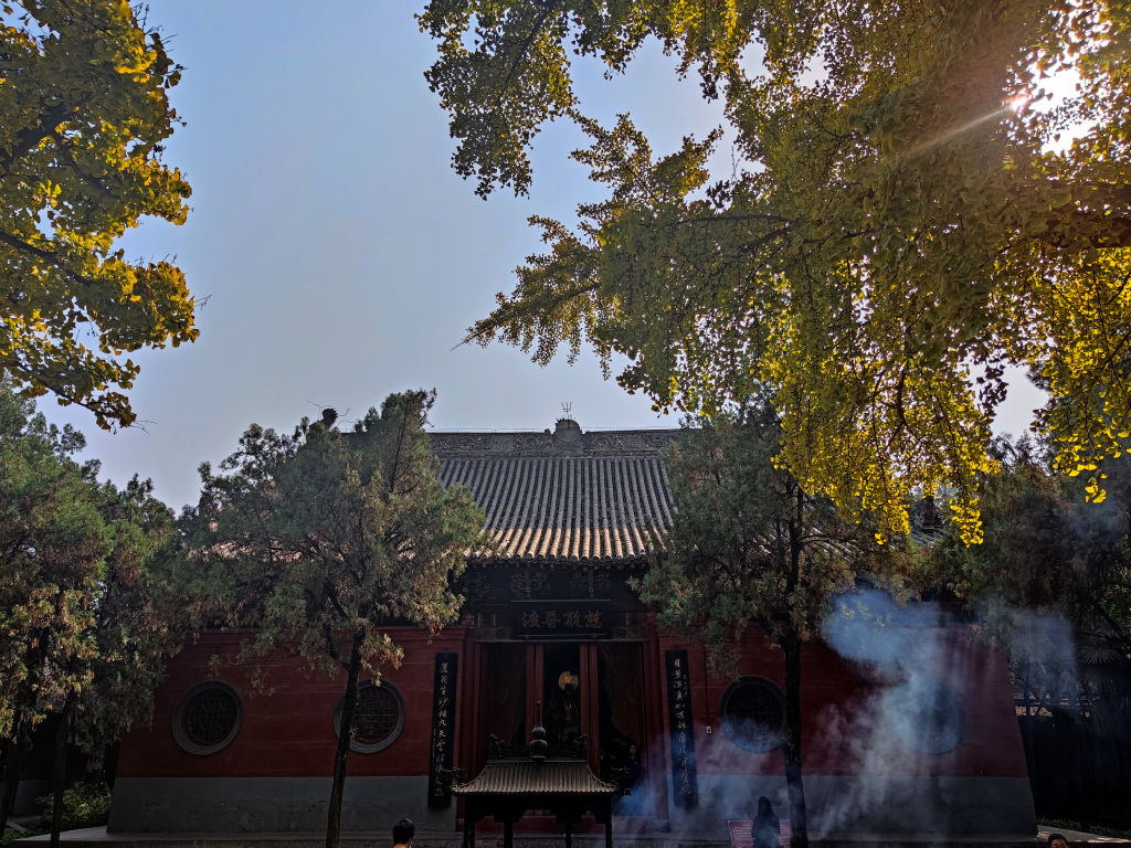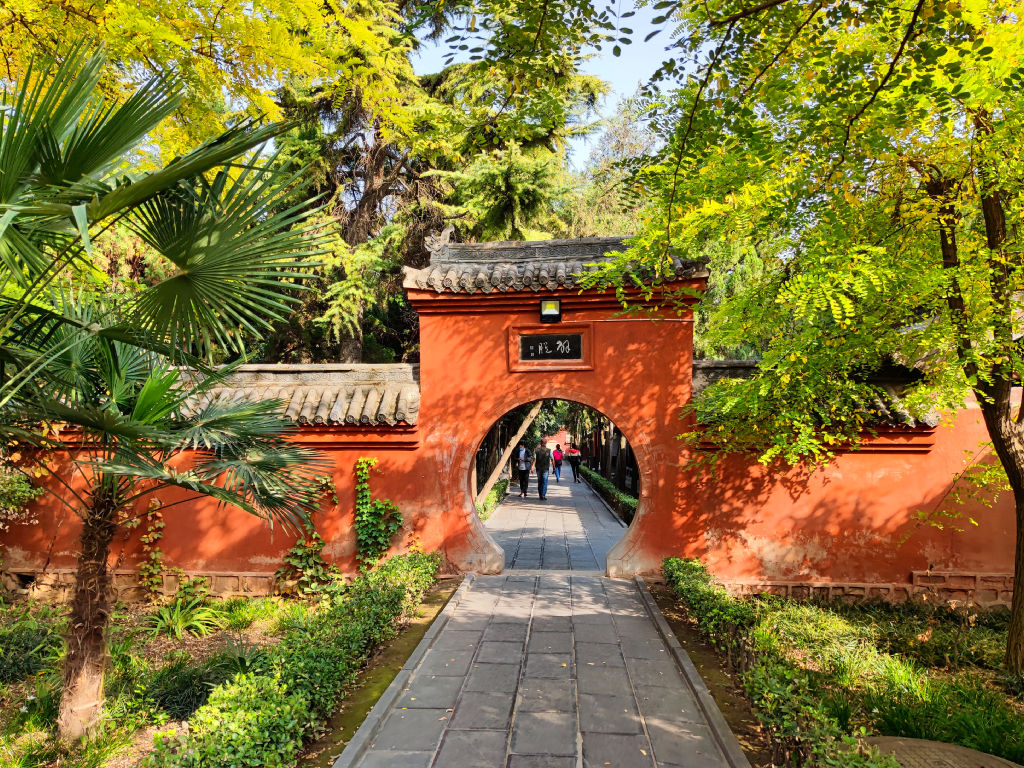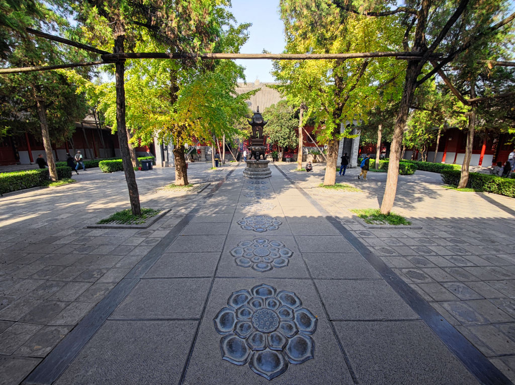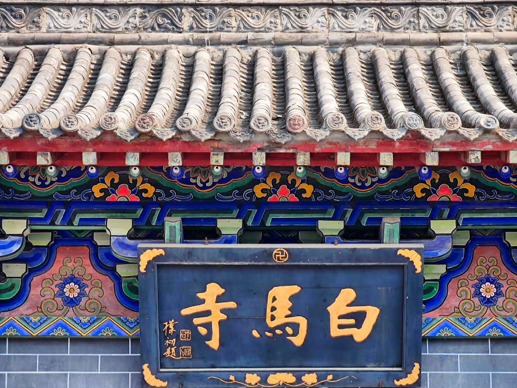Pour l’après midi, je me rends au deuxième site le plus important de Luoyang, il s’agit du temple de Baima, ou temple du cheval blanc. Il est situé à l’Est de la ville. Ce temple est le premier temple bouddhique de Chine. Il a une histoire étonnante. Alors que l’empereur a fait un rêve prémonitoire, il envoie des émissaires vers l’Ouest. Ces émissaires rencontreront des érudits indiens au Pakistan. Ils reviendront avec des sutras à Luoyang, montés sur deux chevaux blancs. L’empereur prit alors la décision de faire construire ce temple et développa ainsi l’étude du Bouddhisme en Chine. Le temple de Baima est encore vivant avec une communauté de moines qui vivent dans le temple.