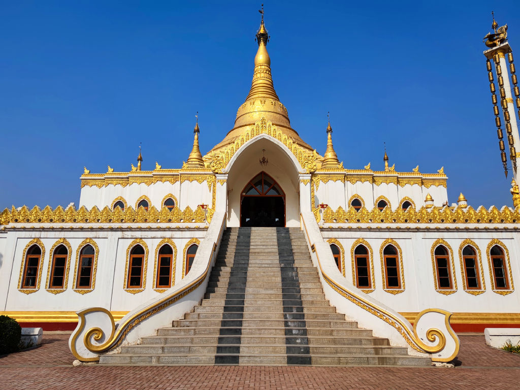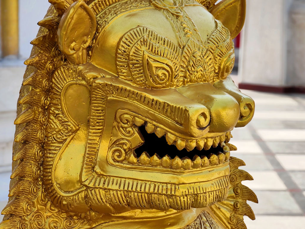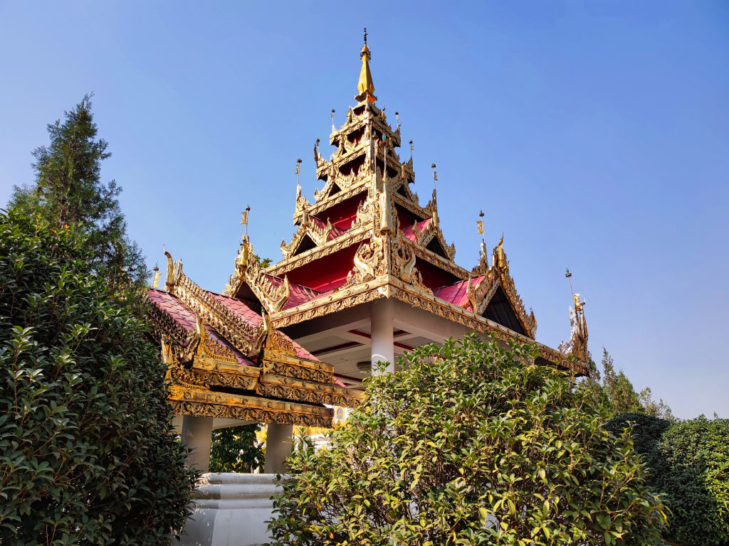 Il y a aussi un temple birman, une reproduction du temple de Mandalay. Avec d’autres symboles de la tradition bouddhique birmane. Ce temple est vraiment somptueux.
