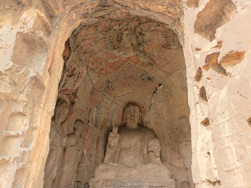La plupart des grottes ont malheureusement perdu leurs pigments, contrairement à Yungang.