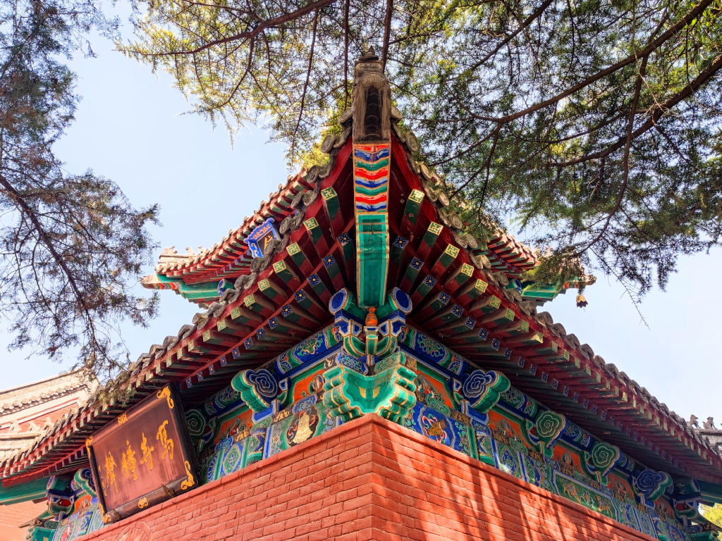 On remarque cette pagode sculptée qui dépasse, magnifique.