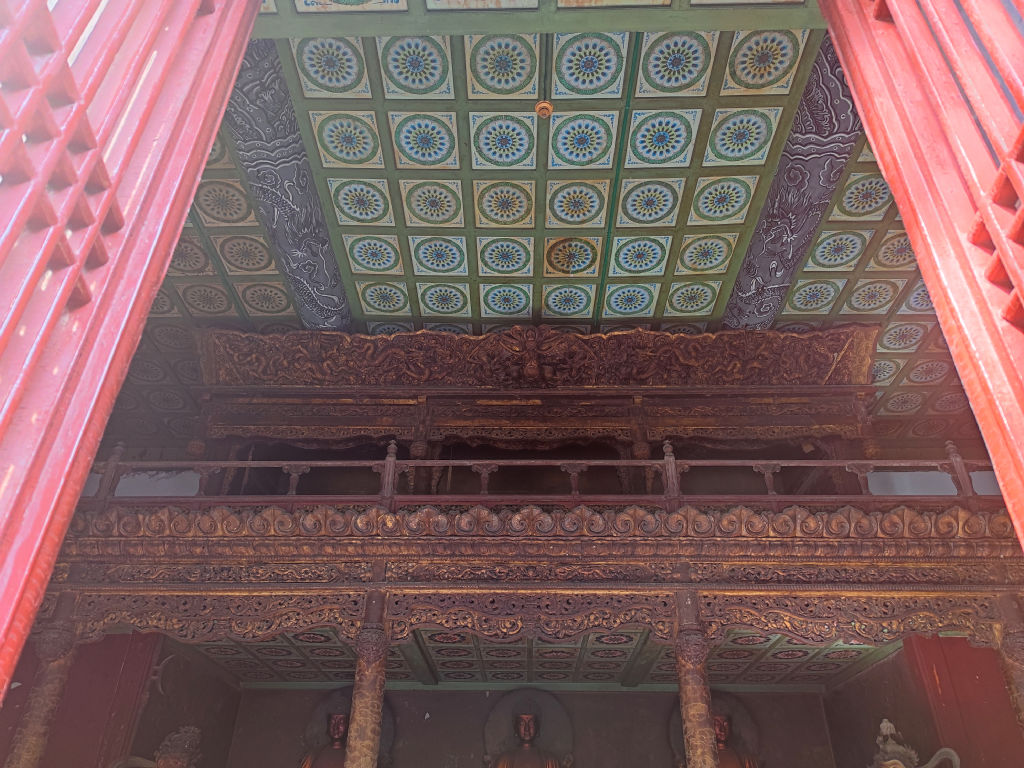 Les différents pavillons sont vraiment précieux. Les autels sont faits de bois sculptés finement. Comme le temple est encore en activité et beaucoup de gens sont là pour prier, j’évite de prendre en photo les effigies de Bouddha même si rien n’indique que l’on ne peut pas prendre de photos. Comme il y a beaucoup de gens qui prient, je ne veux pas les déranger.
