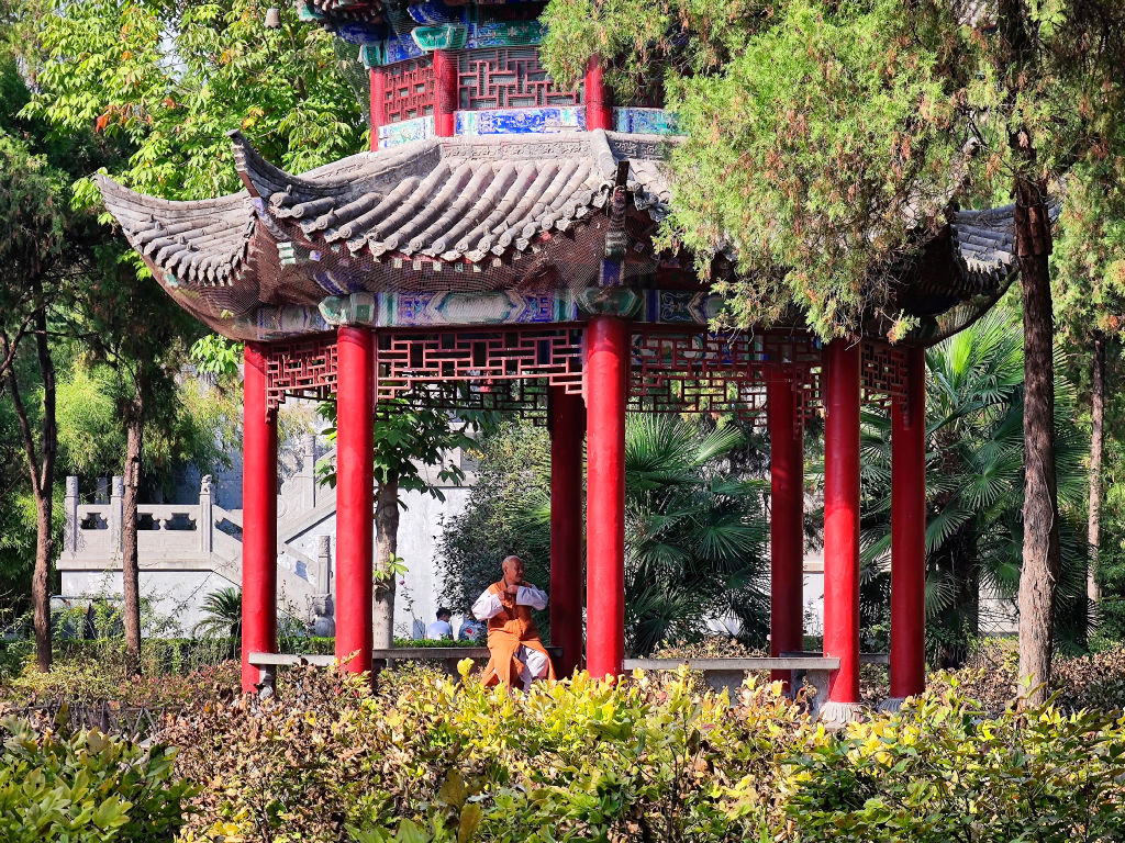 Le parc du temple est aussi très joli avec des pavillons où les moines s’installent et contemplent la nature.