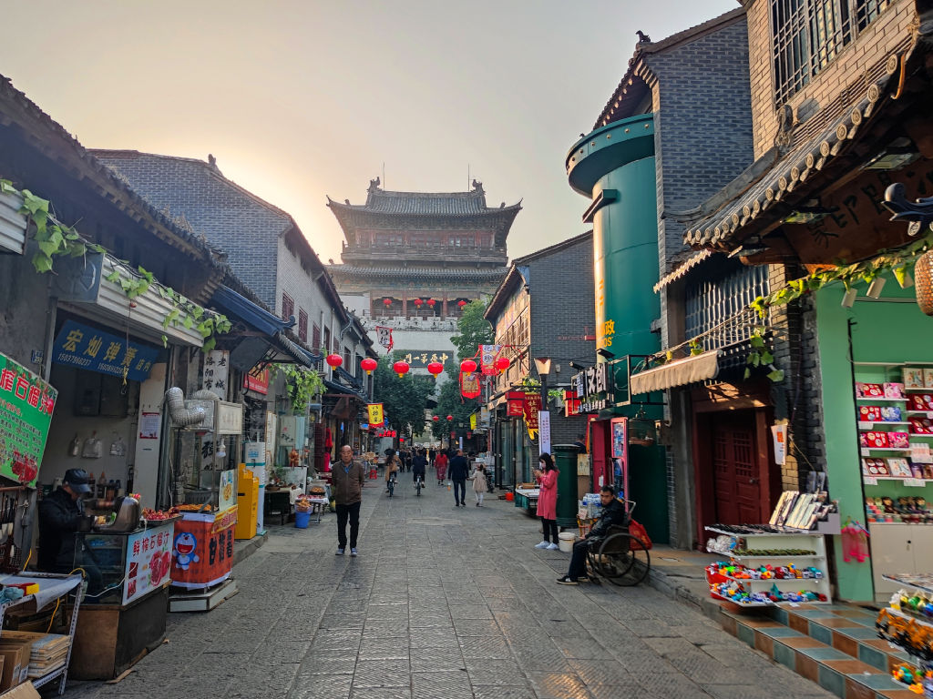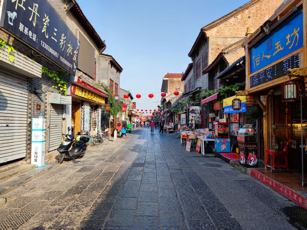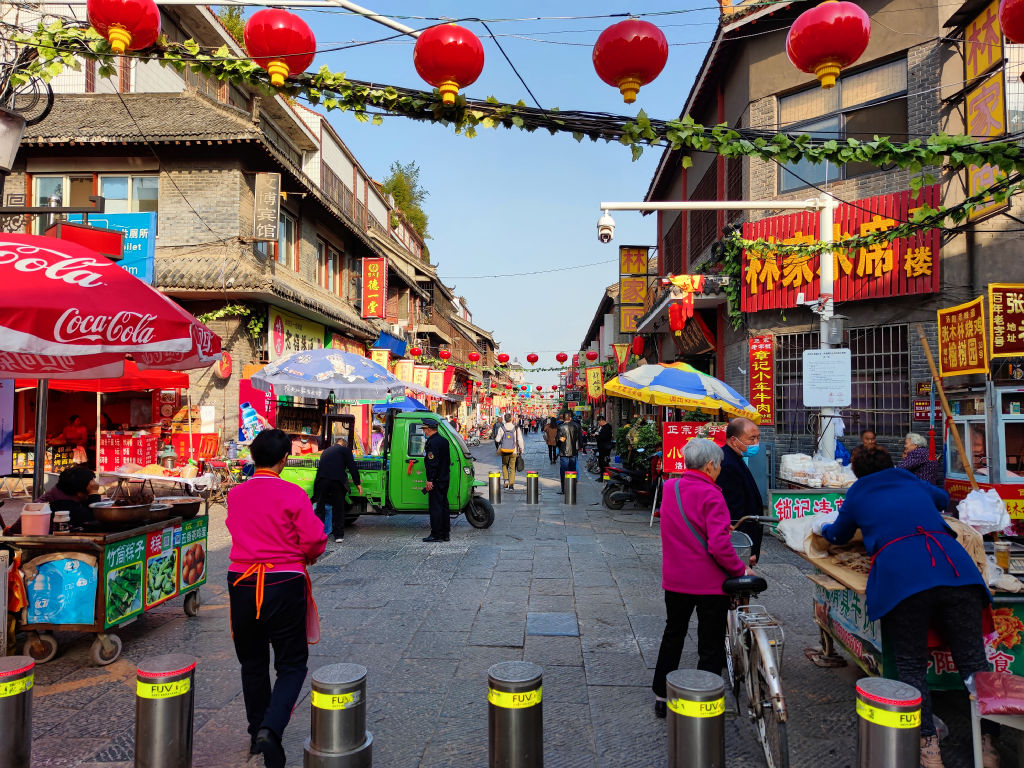 Derrière cette enceinte fortifiée, le vieux Luoyang se découvre de deux manières différentes. Il y a la rue rénovée qui est une enfilade de magasins pour les promeneurs et les touristes. On y trouve plusieurs batiments intéressants néanmoins.