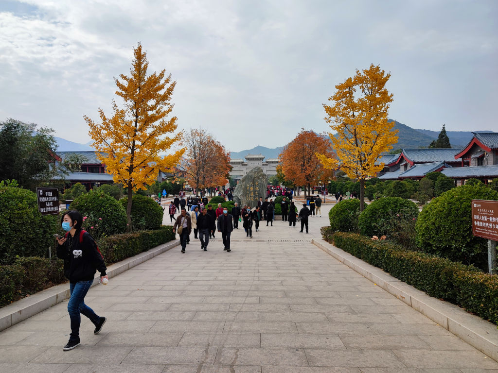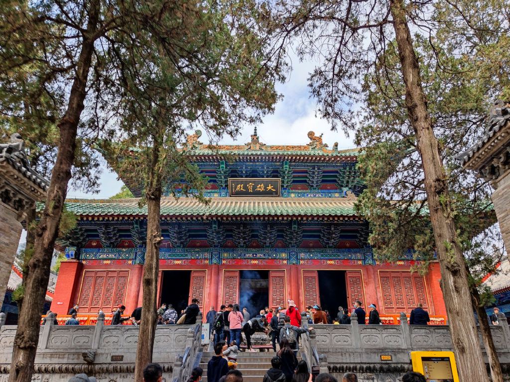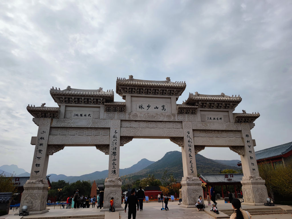 Je suis donc reversé sur le bus suivant, celui de 9h40. Aïe, une heure et demi à attendre dans ce hall de gare de bus. Pour une ville aussi importante que Zhengzhou, dans une région où le bus est un moyen de transport pratique pour les plus modestes, j’aurai imaginé un hall bien plus moderne et imposant, on est tous entassé les uns sur les autres, il y a peu de places assises et les informations d’embarquement ne se font pas au hautparleur, c’est le chauffeur lui-même qui gueule depuis la porte pour inviter les passagers à embarquer… OK, pourquoi pas. Le bus pour Shaolin est petit, mes épaules et genoux ne rentrent pas dans le siège et je plains la fille qui a la place à côté de moi. Il faut deux heures pour arriver à se sortir de Zhengzhou et rouler au pas jusqu’à Dengfeng. A Dengfeng, tout le monde descend car il faut faire le plein de gaz. On attend que le chauffeur remplisse le réservoir et on commence à discuter avec les autres passagers sur leur plan de la journée. Ma voisine entend que je peux parler chinois, en remontant dans le bus on fait connaissance. Je m’excuse de la place que je prends dans le siège, je suis tout coincé dans ce petit espace, ça l’a fait rire et reste compréhensive. C’est une ingénieure de Hangzhou qui passe le week end à Songshan pour faire le tour de la montagne. Le courant passe bien entre nous et on décide de passer la journée à Shaolin ensemble, ce sera plus intéressant. J’apprécie particulièrement ce genre de rencontres sur la route, c’est une composante tellement enrichissante des voyages en solitaire. Shaolin est clairement une destination très populaire, il y a une foule énorme qui vient ici découvrir ce temple à l’histoire riche et le Kung-Fu qui y est affilié.