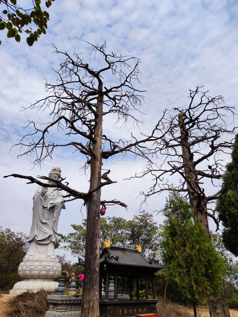 Mis à part le temple de Shaolin, Songshan est immense parc dans lequel on peut faire de magnifiques ballades. On aperçoit tout en haut d’une montagne une immense statue blanche, la montée est raide, tout en escalier, il nous semble impossible de faire l’aller retour dans l’après midi. On apprend qu’il s’agit d’une grotte d’un moine ermite qui se trouve tout là haut.