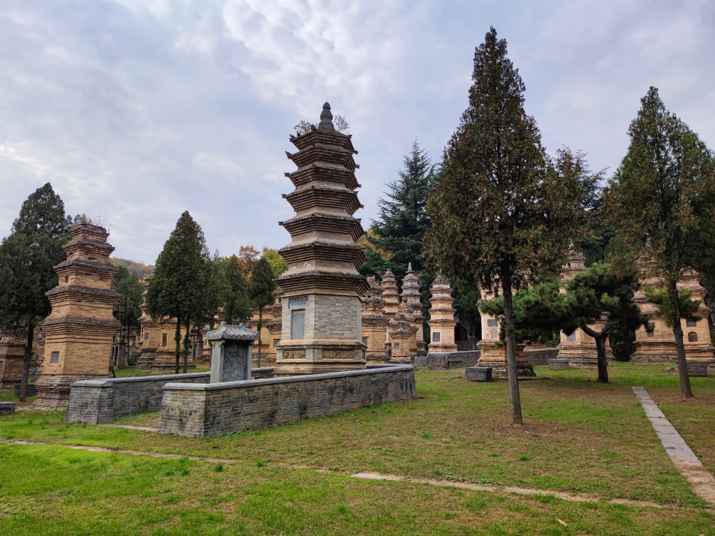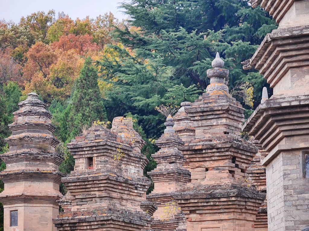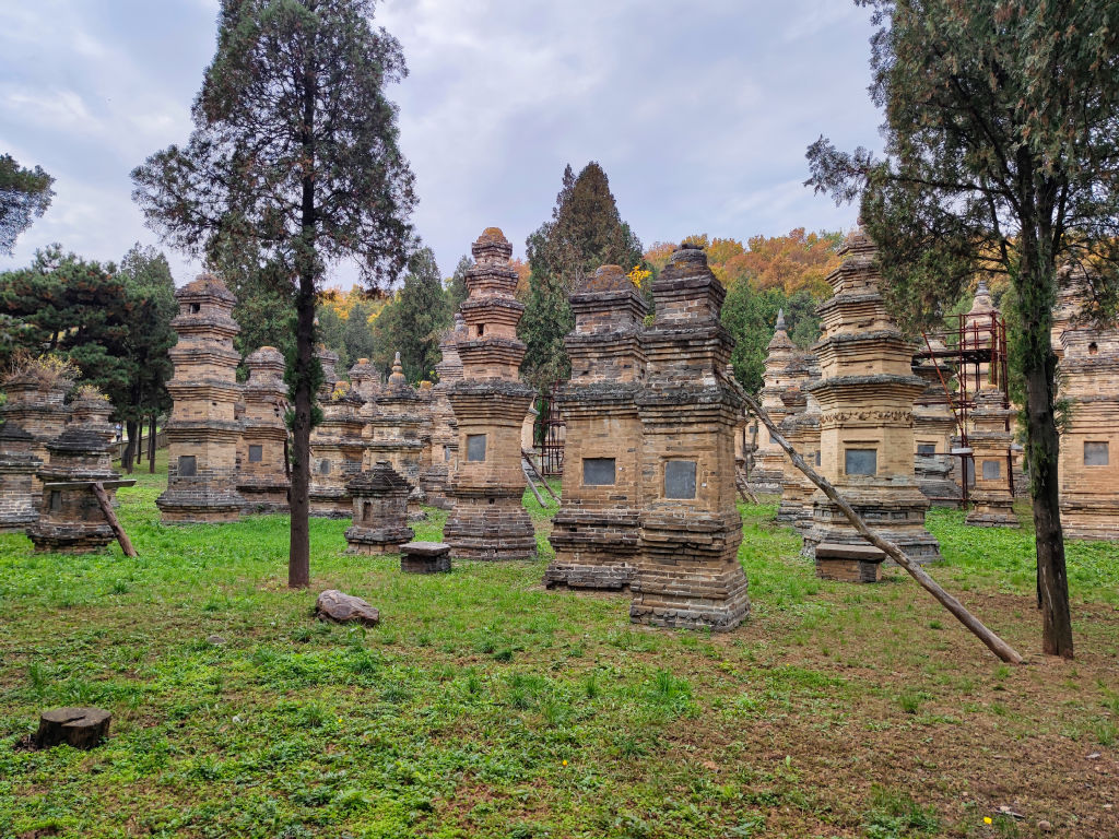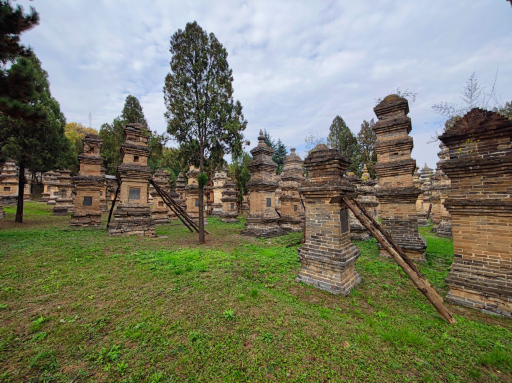 Un autre aspect fascinant de Songshan, c’est cette foret de pagodes. Chaque pagode a été édifiée pour un maitre du temple de Shaolin. La pagode la plus haute abrite les cendres du plus éminent maitre de Shaolin. Il y a plusieurs centaines de pagodes de brique dans ce lieu.