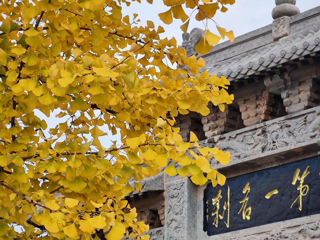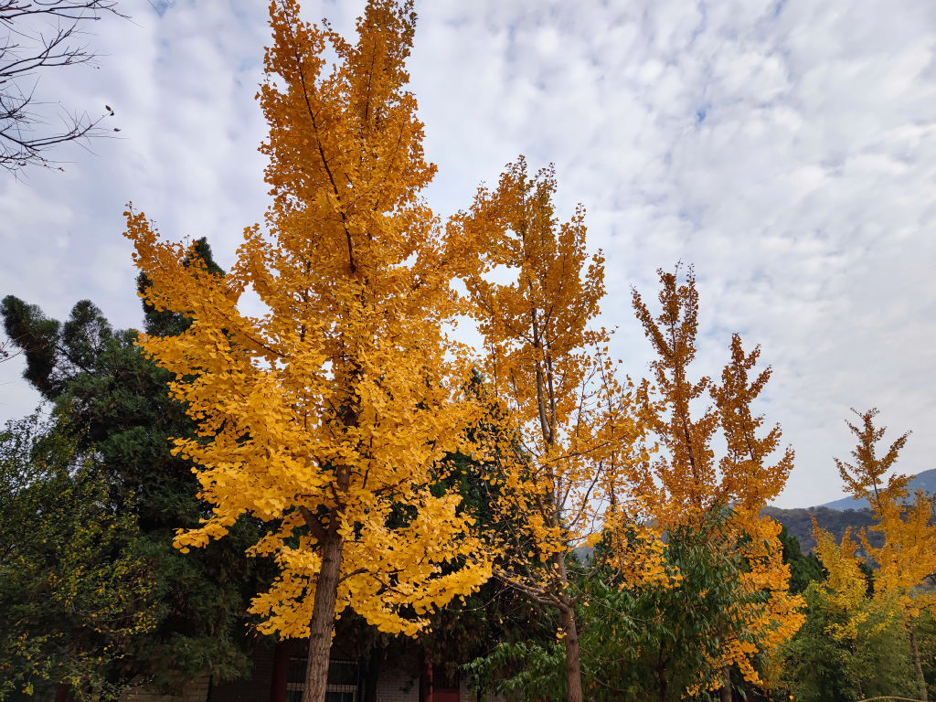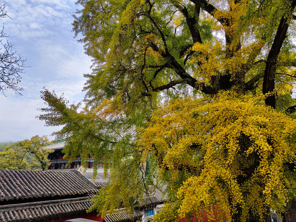 Les Ginkgo centenaires dans les cours du temple ont un feuillage qui a commencé à virer au doré. Un contraste magnifique avec l’architecture du temple.