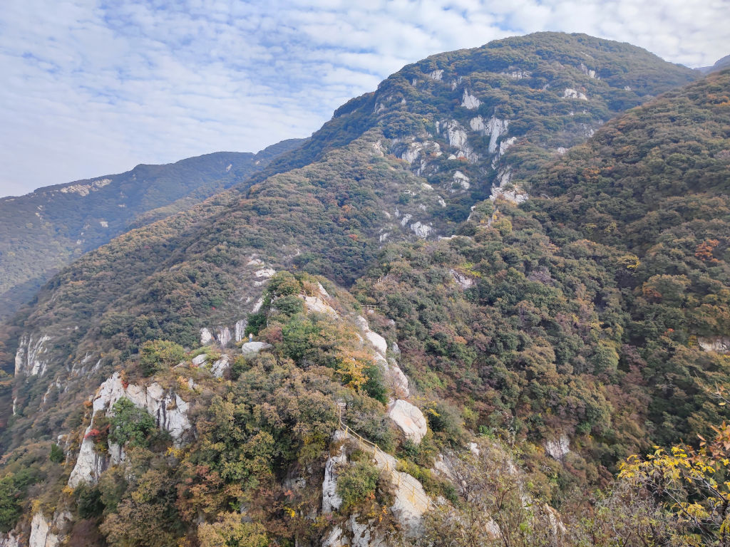 Le massif de Songshan est réputé pour ses paysages grandioses. Mon compagnon de voyage a décidé de rester dormir à Dengfeng pour faire le tour de Songshan le lendemain tôt. Je suis déçu de ne pas pouvoir rester car l’aperçu que l’on a depuis ce point de vue est grandiose, le relief est vertical, il y a un équilibre entre végétal et minéral, c’est vertigineux.