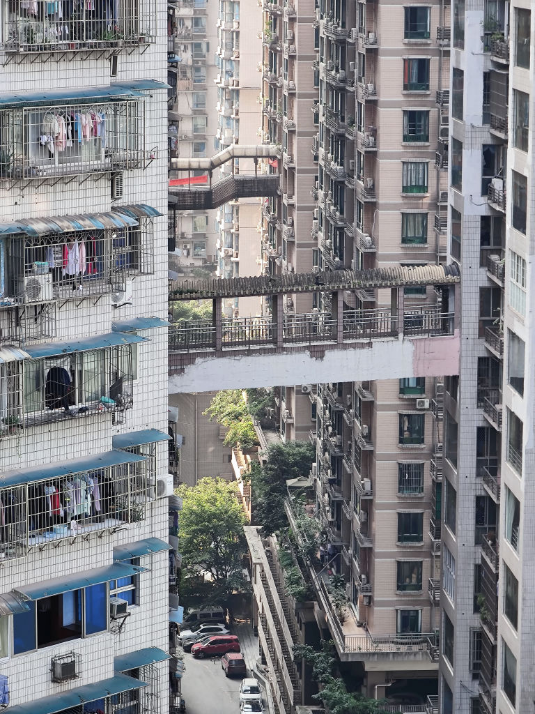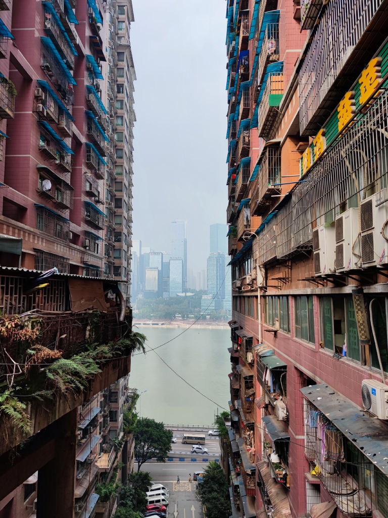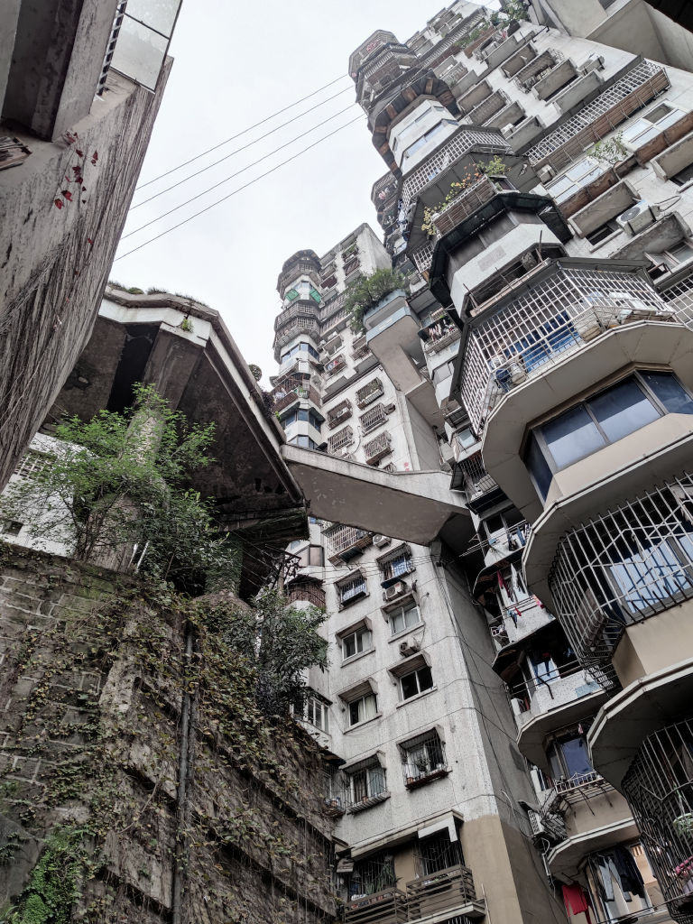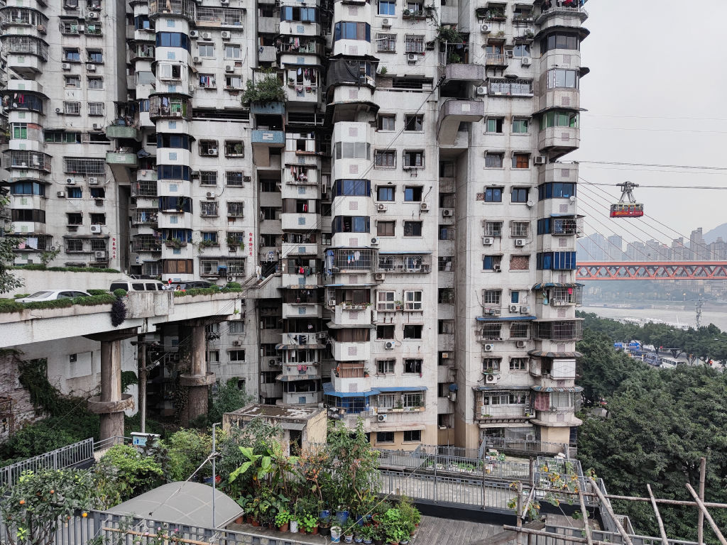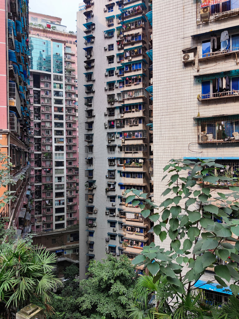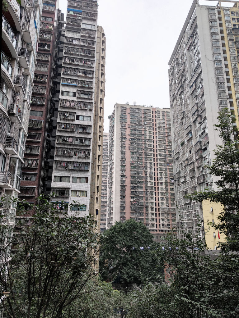 Ces grands ensembles rappellent une époque de Chongqing. Aux premiers abords, ces immeubles semblent tristes, surtout avec notre regard occidental, qui seraient surnommés de cages à lapins mais qui sont mieux acceptés en Chine. On peut imaginer que les personnes qui ont les balcons vue fleuve bleus ne se plaignent pas trop.