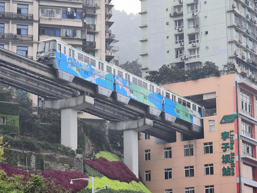 Depuis la station de Liziba, on peut grimper jusqu'à Erchang, une ancienne zone industrielle restaurée avec des bars et restaurants. La montée est ardue, on grimpe à flanc de montagne en passant dans une zone qui a accueilli les ambassades pendant la seconde guerre mondiale. Attaquée et envahie par l'armée japonaise, la Chine avait déplacé sa capitale à Chongqing, grâce aux montagnes et au brouillard si fréquent dans la région, c'était une ville idéale pour se protéger des bombardiers japonais. Cette colline aux falaises à pic étaient une base parfaite qui a brassé de nombreuses nationalités, la plupart des maisons ont été détruites, on ne trouve que quelques vestiges mais surtout une vue sur le fleuve, et parfois un métro passe juste devant nous.