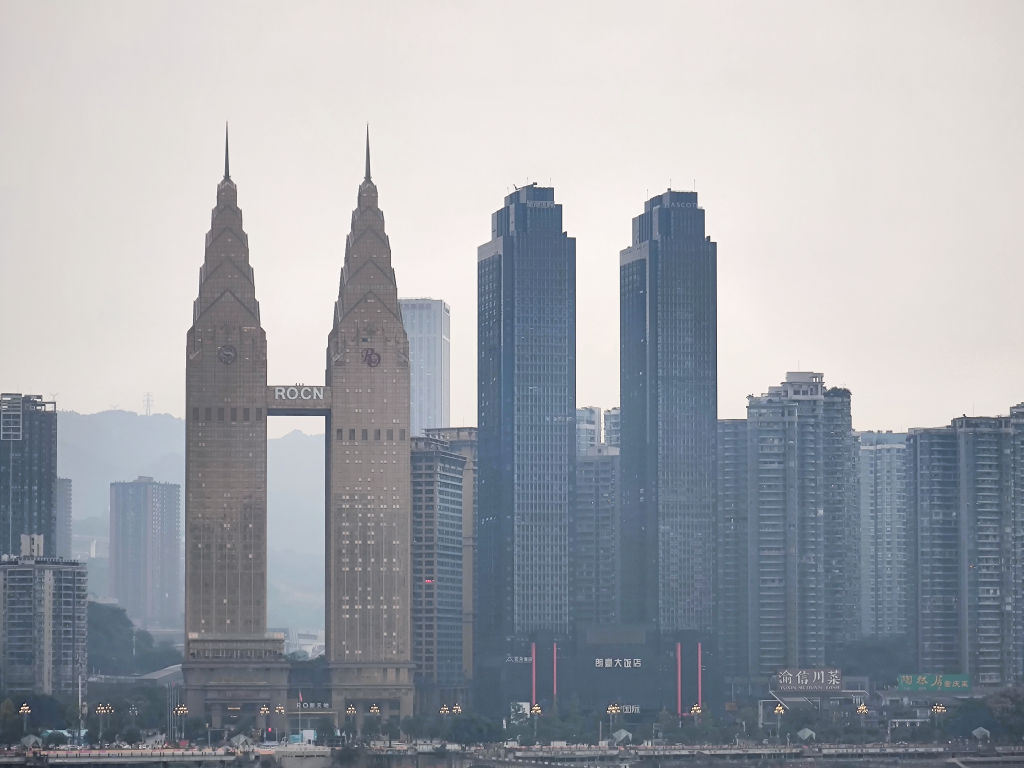 Au Nord de Chongqing, la vue sur le nouveau quartier financier en plein développement.