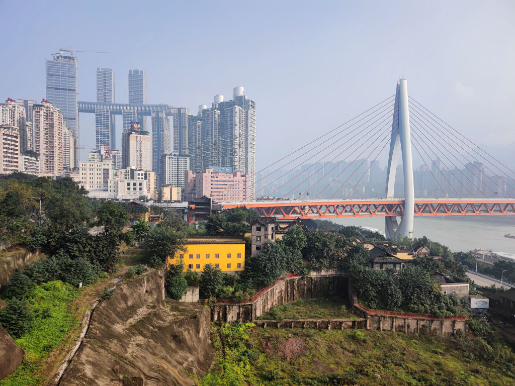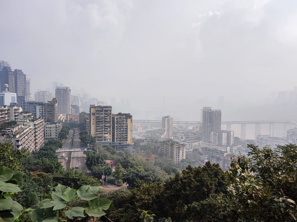 Depuis la zone de Erchang, tout en haut de la colline, on a une vue splendide sur Yuzhong et le Yangtze. Je suis déjà venu la nuit ici, il y a beaucoup de bars très sympas et la vue est géniale. En journée, on peut profiter de ce fameux brouillard de Chongqing, surnommée aussi Wudu, la capitale dans le brouillard.