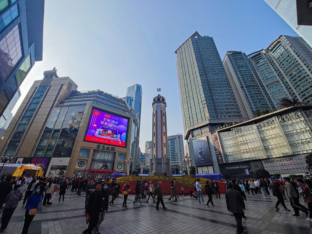 La place de Jiefangbei représente le centre de Chongqing, c'est ici que l'on retrouve toutes les boutiques de luxe.