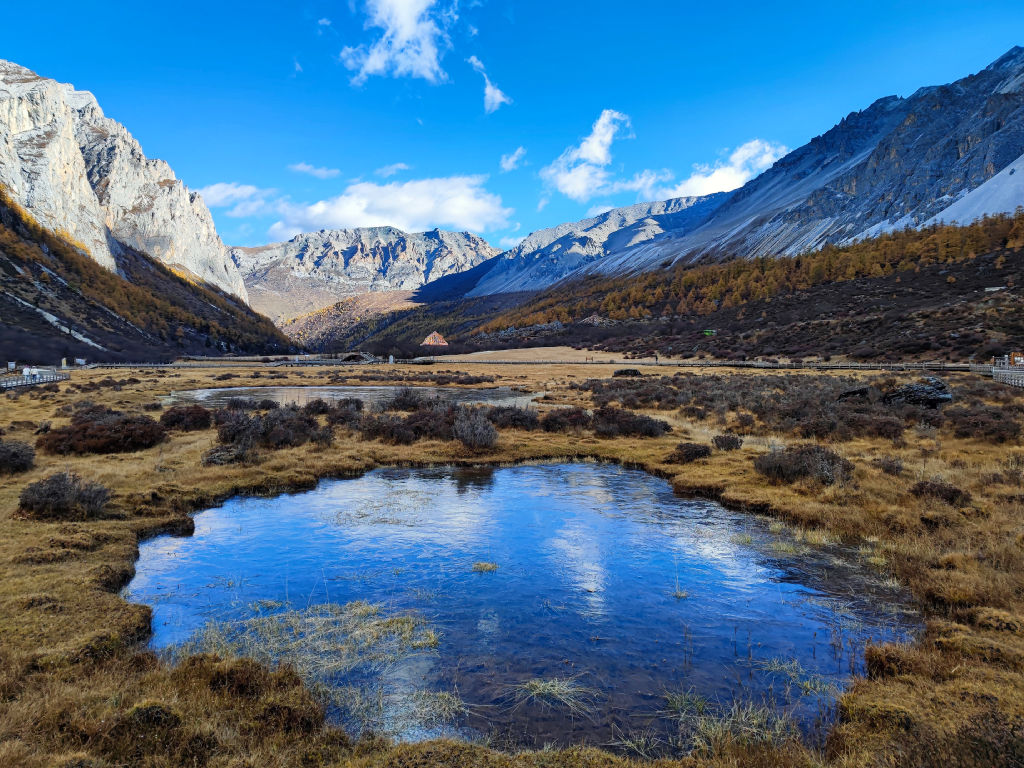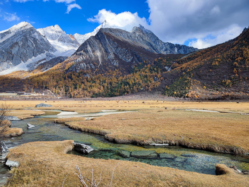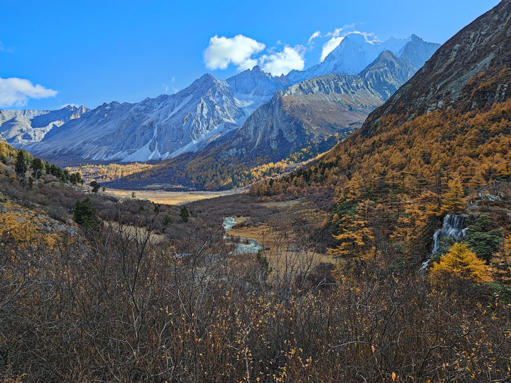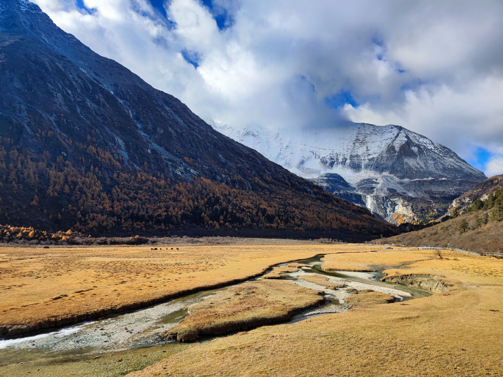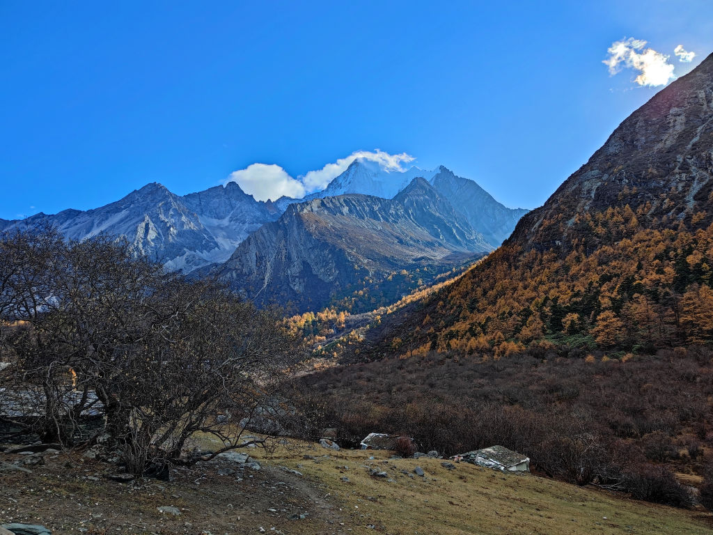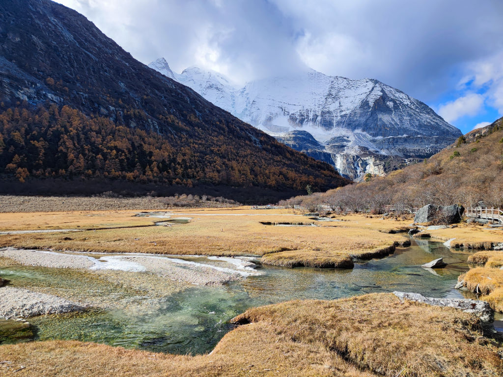 Le parc naturel de Yading dans le Sud-Ouest du Sichuan fait partie des plus beaux et mieux aménagés parcs naturels de Chine. C’est aussi un lieu sacré pour les bouddhistes tibétains qui viennent ici pour faire un pèlerinage autour de ces montagnes culminant toutes à environ 6000 mètres sont toujours enneigés et qui forment une trinité. Le paysage est incroyable, surtout en Octobre - Novembre lorsque les feuilles ont pris leurs teintes automnales, le parc se visitant idéalement en deux jours, je me concentre sur le « changxian », chemin le plus long qui prend la journée en marchant tranquillement, qui débute à 4000 mètres et finit la tête autour des sommets à presque 5000 mètres.