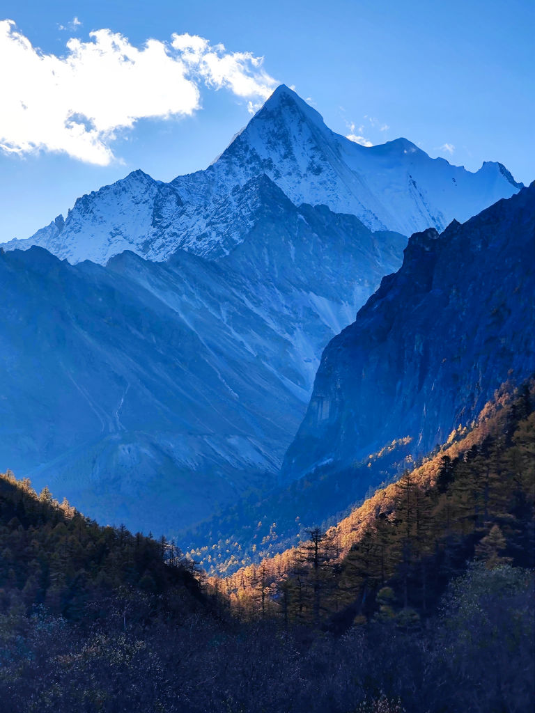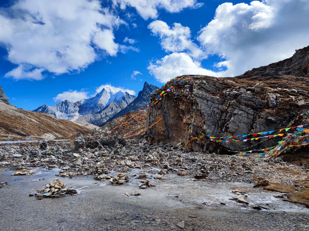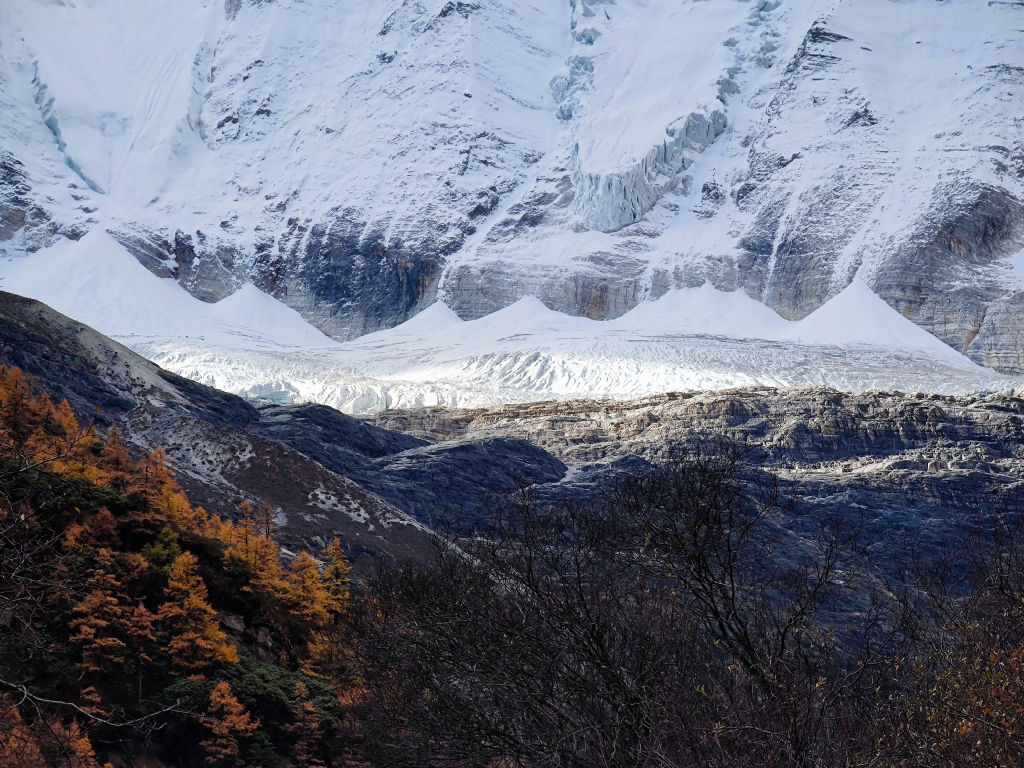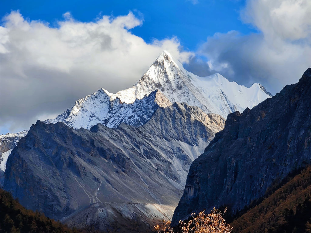 La deuxième montagne sacrée, le mont Xianuodoji qui culmine à 5958 mètres s’élève au fond de la vallée glaciaire de Yading.