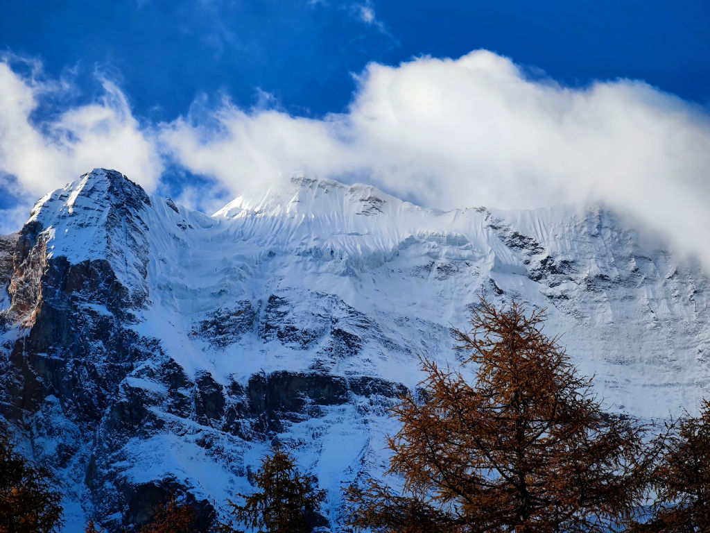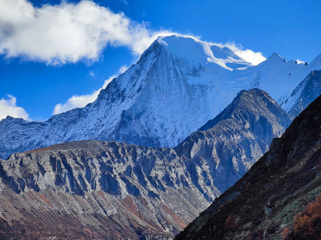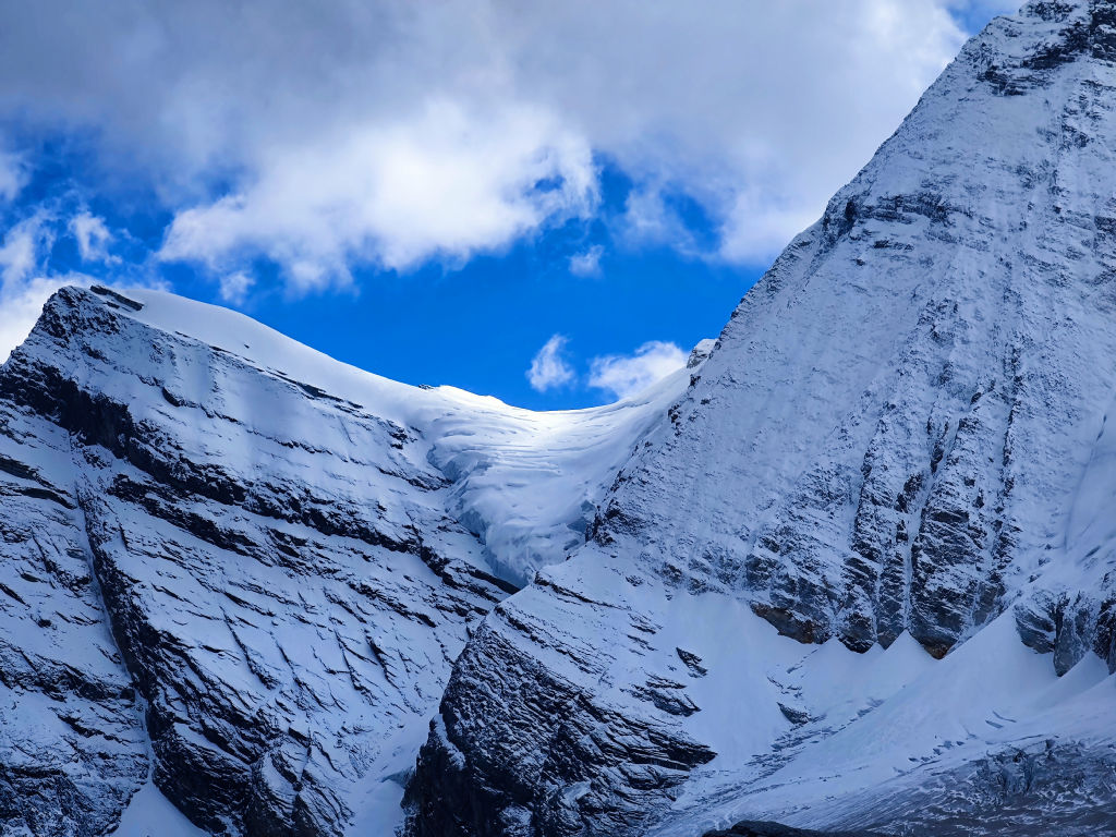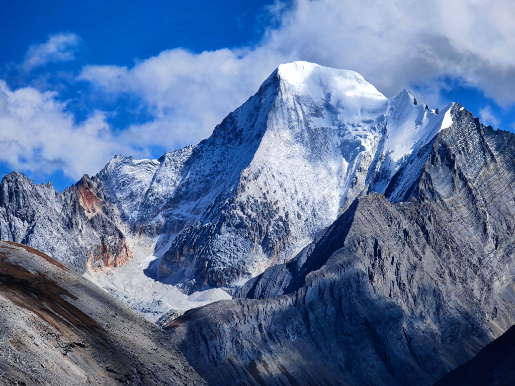 La deuxième montagne sacrée, le mont Xianuodoji qui culmine à 5958 mètres s’élève au fond de la vallée glaciaire de Yading.