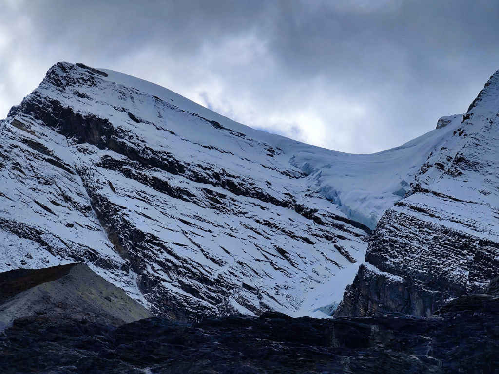 Malheureusement le sommet le plus emblématique de Yading, le Youmayong qui culmine aussi à 5958 mètres est déjà recouvert d’une épaisse couche nuageuse qui ne fera que grossir au fur et à mesure de la journée.