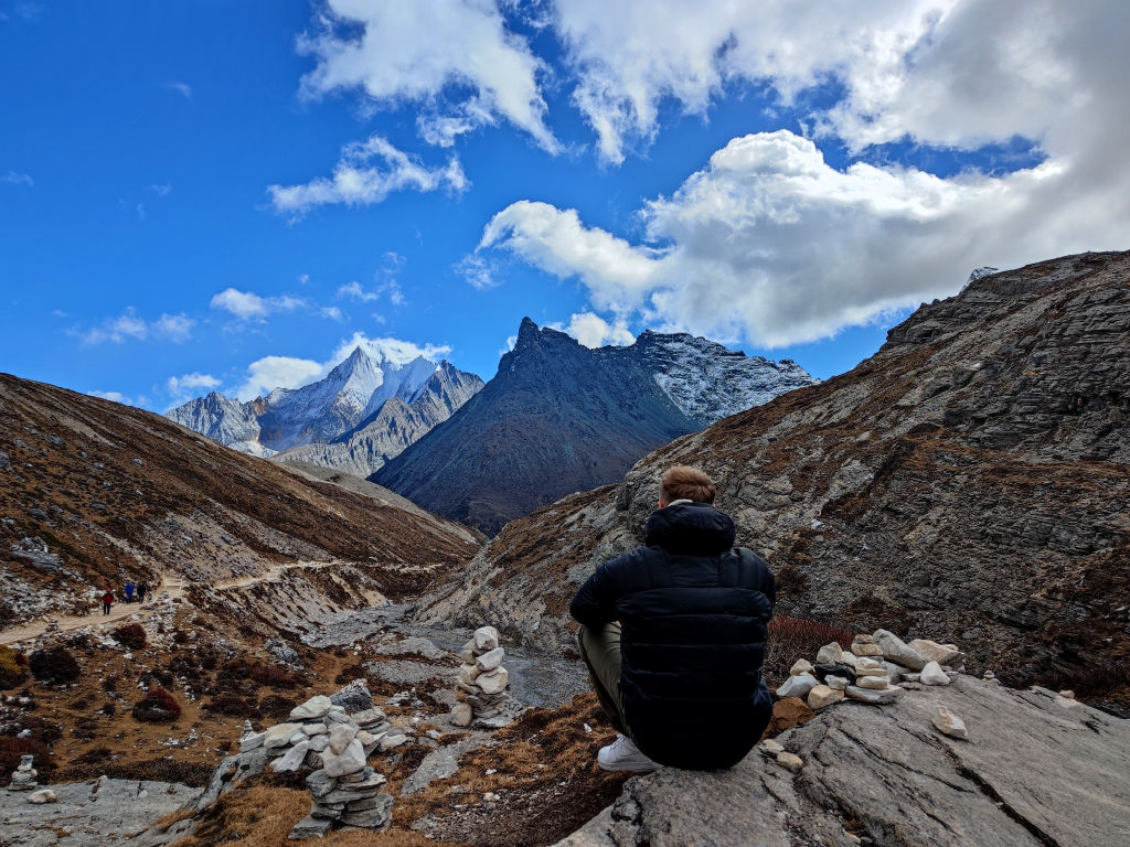 Heureusement la vue en contre plongée sur le paysage de Yading est absolument incroyable et l'effort est mérité.