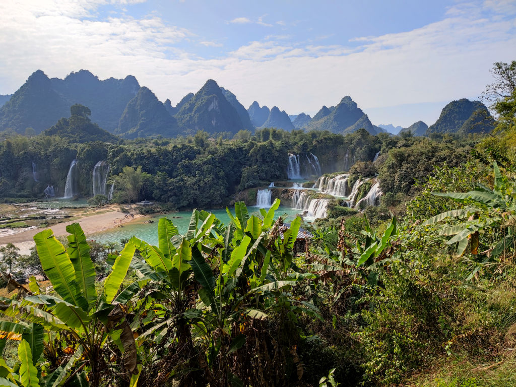 Depuis Mingshi, on rejoint la cascade de Detian, la plus grande cascade transfrontalière d’Asie en parcourant la mythique route G219, la version chinoise de la route 66 américaine qui fait rêver les voyageurs. On traverse des paysages incroyables avant d’arriver nez à nez avec le poste de frontière avec le Vietnam. Ici, la rivière et la cascade lovées dans une vallée de karst séparent les deux pays, le paysage est splendide mais aussi hautement symbolique.