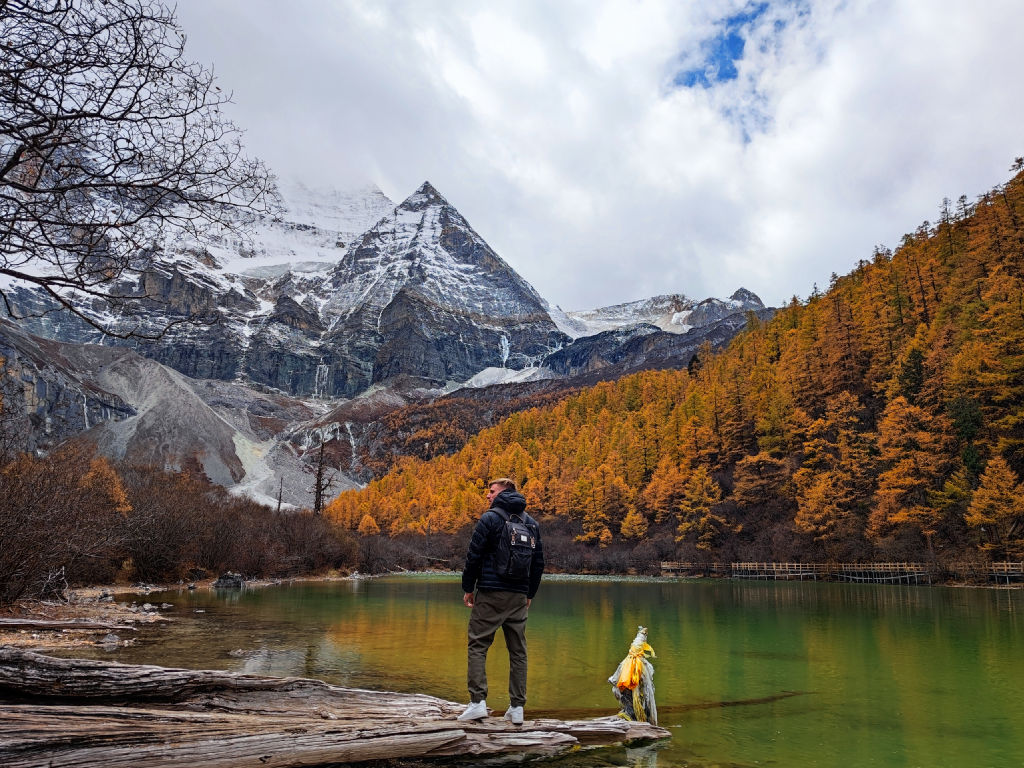 Le parc naturel de Yading dans le Sud-Ouest du Sichuan fait partie des plus beaux et mieux aménagés parcs naturels de Chine. C’est aussi un lieu sacré pour les bouddhistes tibétains qui viennent ici pour faire un pèlerinage autour de ces montagnes culminant toutes à environ 6000 mètres sont toujours enneigés et qui forment une trinité. Le paysage est incroyable, surtout en Octobre - Novembre lorsque les feuilles ont pris leurs teintes automnales, le parc se visitant idéalement en deux jours, je me concentre sur le « changxian », chemin le plus long qui prend la journée en marchant tranquillement, qui débute à 4000 mètres et finit la tête autour des sommets à presque 5000 mètres.