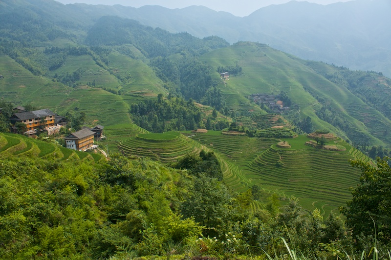 En ce plein mois de Juillet nous partons de Shanghai pour le Sud Ouest de la Chine, la région du Guangxi. Le Guangxi ressemble à la Chine idylique que les occidentaux imaginent quand on leur demande à quelle image ils pensent immédiatement. Notre première étape sera les rizières en terrasse de Longji, sous un temps magnifique les terrasses creusées par l'homme sont magnifiques.