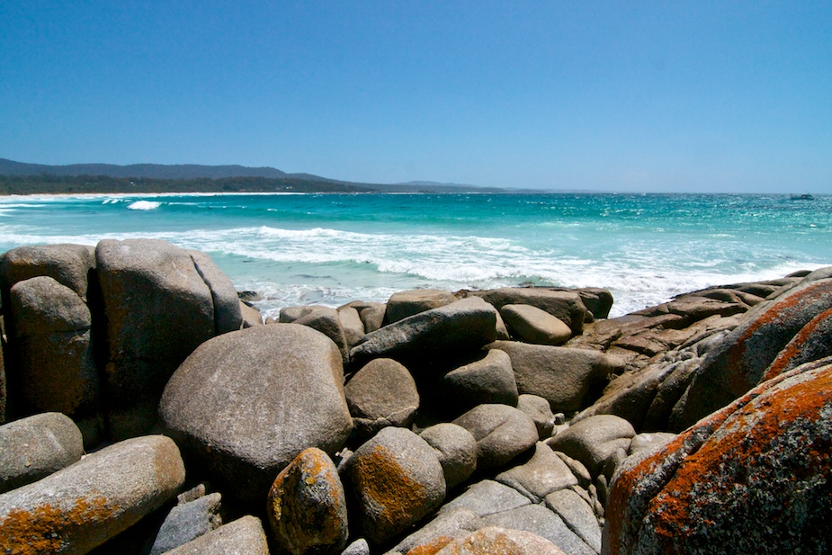 Bay of fires est une immense plage au Nord Est de la Tasmanie, elle s'étend sur 26 kimolètres et nous allons en visiter une petite partie. Au delà de sa longueur, cette plage est réputée pour la blancheur de son sable et les rochers recouverts d'algues qui contrastent avec le turquoise de la mer.