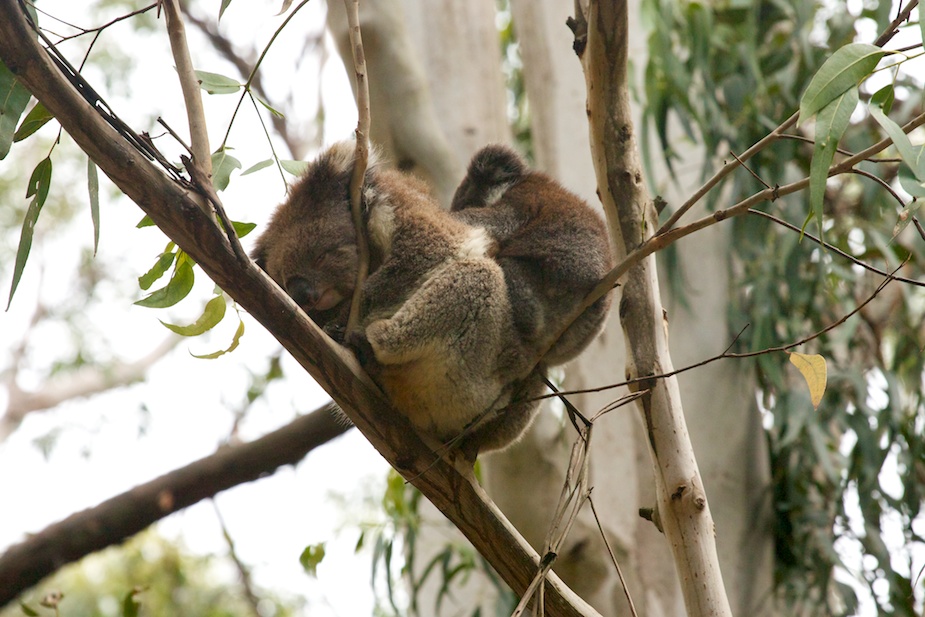 La Great Ocean Road est vraiment impressionnante, elle longe la côte de l'océan du Sud entre Melbourne et Portland et le paysage est fantastique. En ce premier jour, nous longeons la côte avec les plages de surf d'abord bien que le temps terrible ne donne pas l'envie de se mouiller. En route, nous faisons un crochet nature à Kennett River pour voir les Koala et les péroquets qui vivent dans la foret.