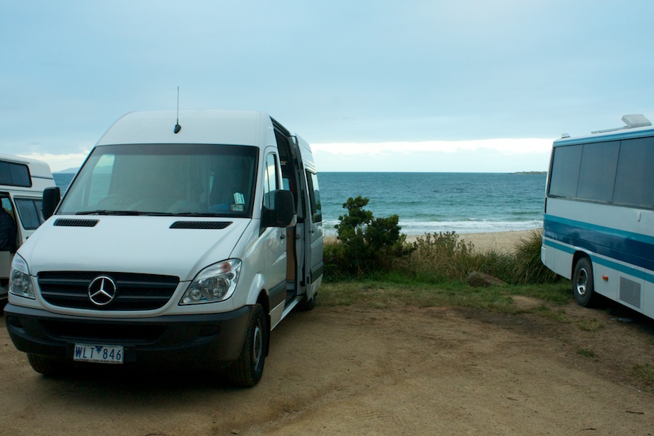 En partant vers Freycinet, nous sommes rattrappés par la nuit. Il est temps de trouver un endroit pour dormir lorsque nous passons devant un superbe camping gratuit face à la plage de la Oyster Bay. La vue est parfaite et la nuit bercée par les vagues...