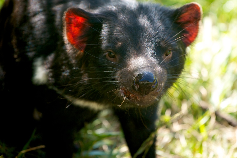 Après avoir été bien secoué dans le bateau autour de la péninsule de Tasmanie, nous passons l'après midi au calme avec la visite du centre de conservation des diables de Tasmanie. Le diable de Tasmanie est un petit marsupial endémique en voie de disparition son sort préoccupe énormément les tasmaniens qui en ont fait le symbole de leur terre. Sur la photo, vous n'avez surement pas vu le rapport entre cet animal et TAZ le personnage de Bugs Bunny, et pourtant...