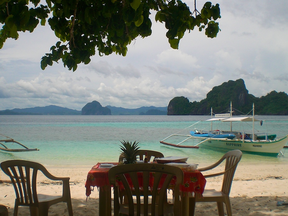 Après une journée de bus entre Puerto Princesa et El Nido, nous arrivons enfin dans ce petit village de pecheur logé au coeur d'un des pysages les plus fantastiques d'Asie : la Baie d'Along en mieux ou Koh Phi Phi sans les foules de touristes. A El Nido, nous trouvons un petit hotel qui donne sur la mer pour quelques euros mais il n'est pas facile de dormir le matin avec le concert des poules et l'absence d'électricité (pas de climatisation ou ventilateur donc malgré la chaleur suffocante). La journée nous partons dans des excursions en bateau dans les environs pour voir de près ces immenses montagnes de karst qui surgissent de la mer. On en prend plein les yeux !