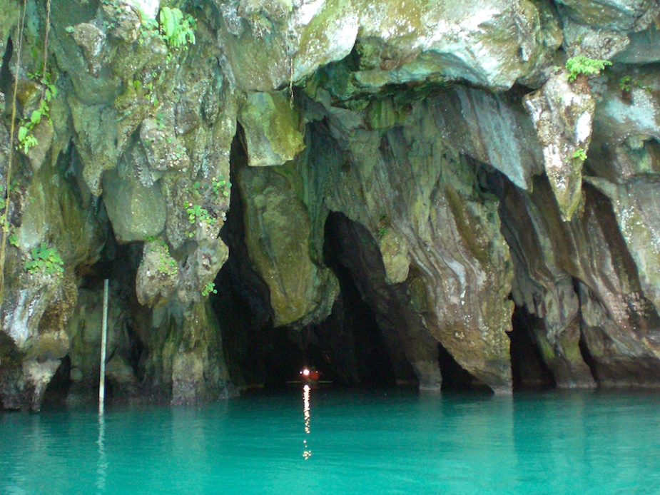 A quelques heures au Nord de Puerto Princesa, se trouve la rivière souterraine la plus longue du monde et qui a été élue une des nouvelles merveilles de la nature. La route pour aller rejoindre le bateau est en terre, on passe des cases avec une famille dedans en soulevant un nuage de poussière. Le petit port où l'on prend le bateau est logé dans un site magnifique. Au delà de la rivière souterraine, le bord de mer est un des plus beaux que nous ayons vu et on commence à deviner ce que l'on va connaitre à El Nido avec des falaises de karst qui plongent dans le bleu de la mer. Par contre en elle même, la rivière souterraine est... sombre. On ne voit pas grand chose et c'est même un peu effrayant !!