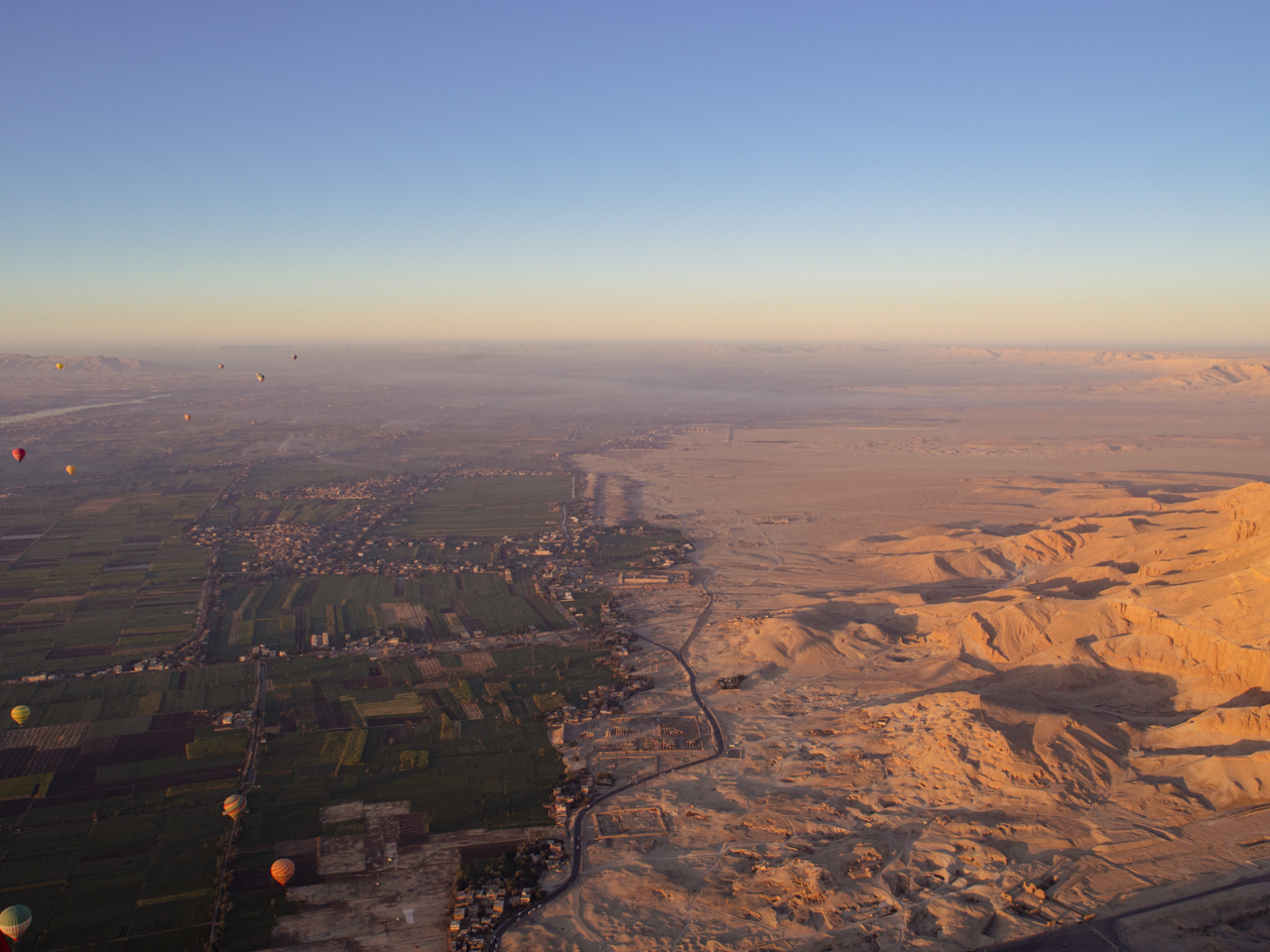 Après quelques heures de sommeil seulement, il faut déjà se réveiller et faire les valises. Nous devons rejoindre notre taxi sur le coup de 4 heures du matin. Après la longue soirée de mariage d’hier, les paupières sont lourdes mais la fatigue laisse la place à l’excitation. Mais pourquoi on aime tellement se faire du mal comme cela ? Nous avons réservé une excursion en montgolfière au-dessus de Louxor, une expérience que l’on ne voulait absolument pas manquer. La vue dans le ciel de Louxor sur la vallée du Nil au petit matin est extraordinaire...