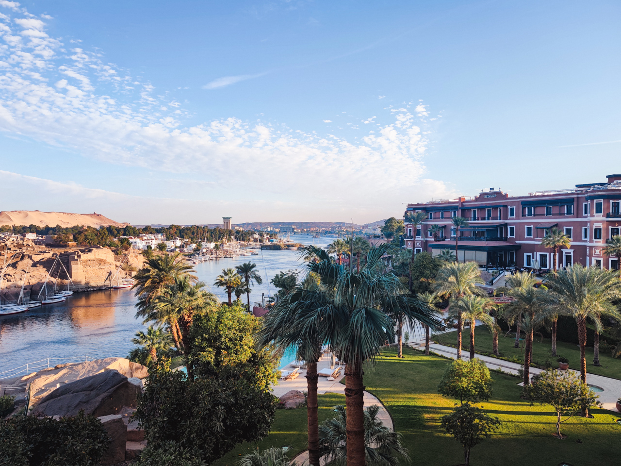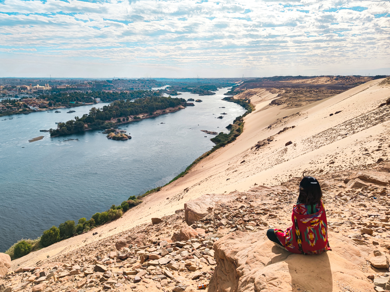 Après une première journée au Caire, nous commençons notre périple le long du Nil par la ville la plus au Sud d'Egypte sur le Nil, Assouan. On va remonter jusqu'au Caire en une dizaine de jours. Ici, on change d'univers, le paysage fluvial correspond vraiment à ce que l'on imagine de cette Egypte éternelle. Le Nil traverse la fameuse première cataracte, des rapides dangereux pour la navigation et qui marquait une frontière dans l'Egypte ancienne.