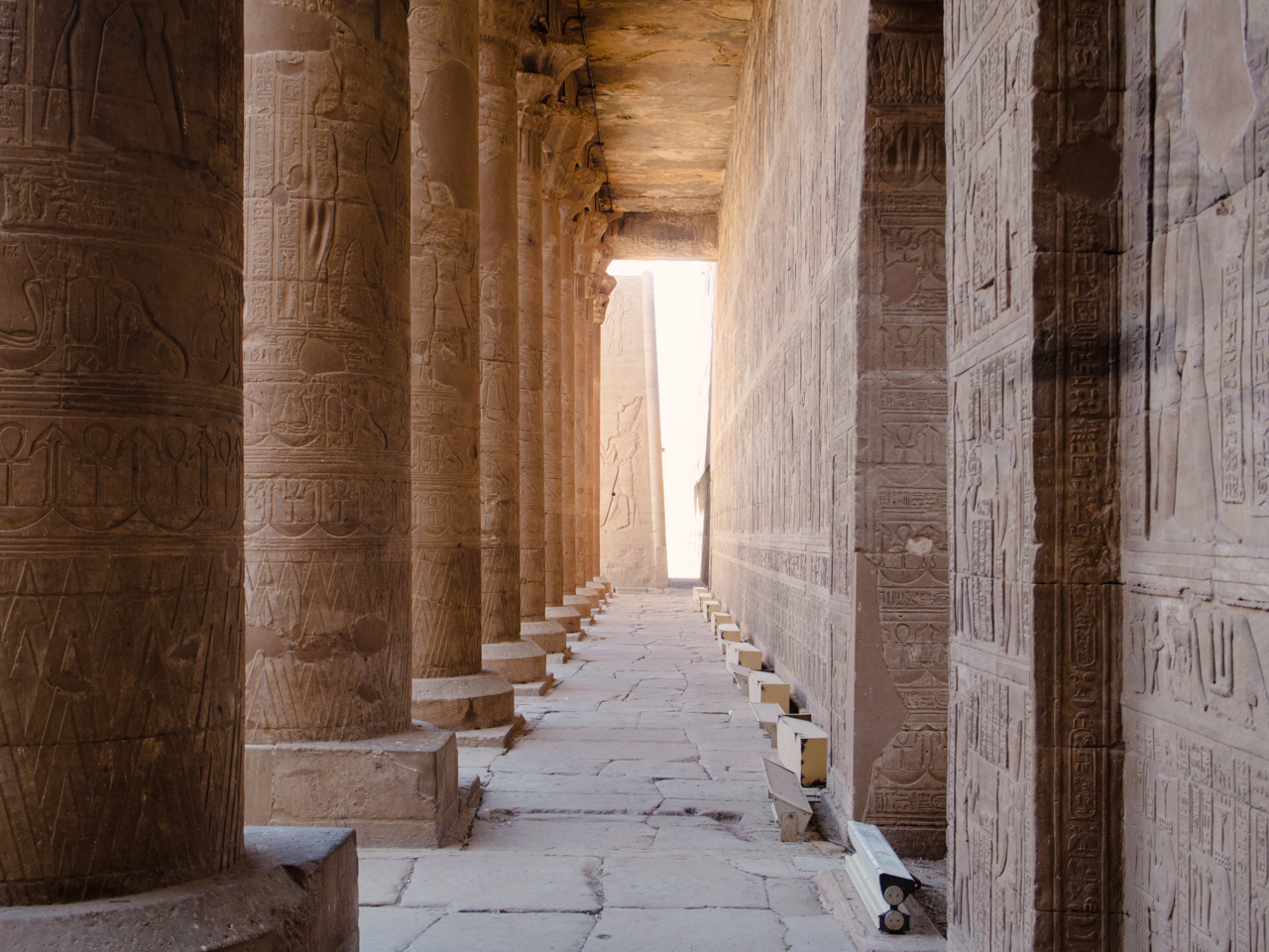 Depuis Assouan, il faut compter une journée entière par la route pour rejoindre Louxor, l'ancienne capitale de l'Egypte ancienne en faisant deux étapes pour visiter les temples de Kom Omdo et de Edfou sur le chemin. Ces deux temples sont grandioses, ils sont aussi des étapes pour la plupart des croisiéristes qui descendent le Nil sur 3 jours. Malheureusement un nombre incalculable de dos d'âne et de checkpoints nous ralentissent, cela nous permet quand même d'apprécier l'intense vie rurale dans ces villages sur les bords du Nil.