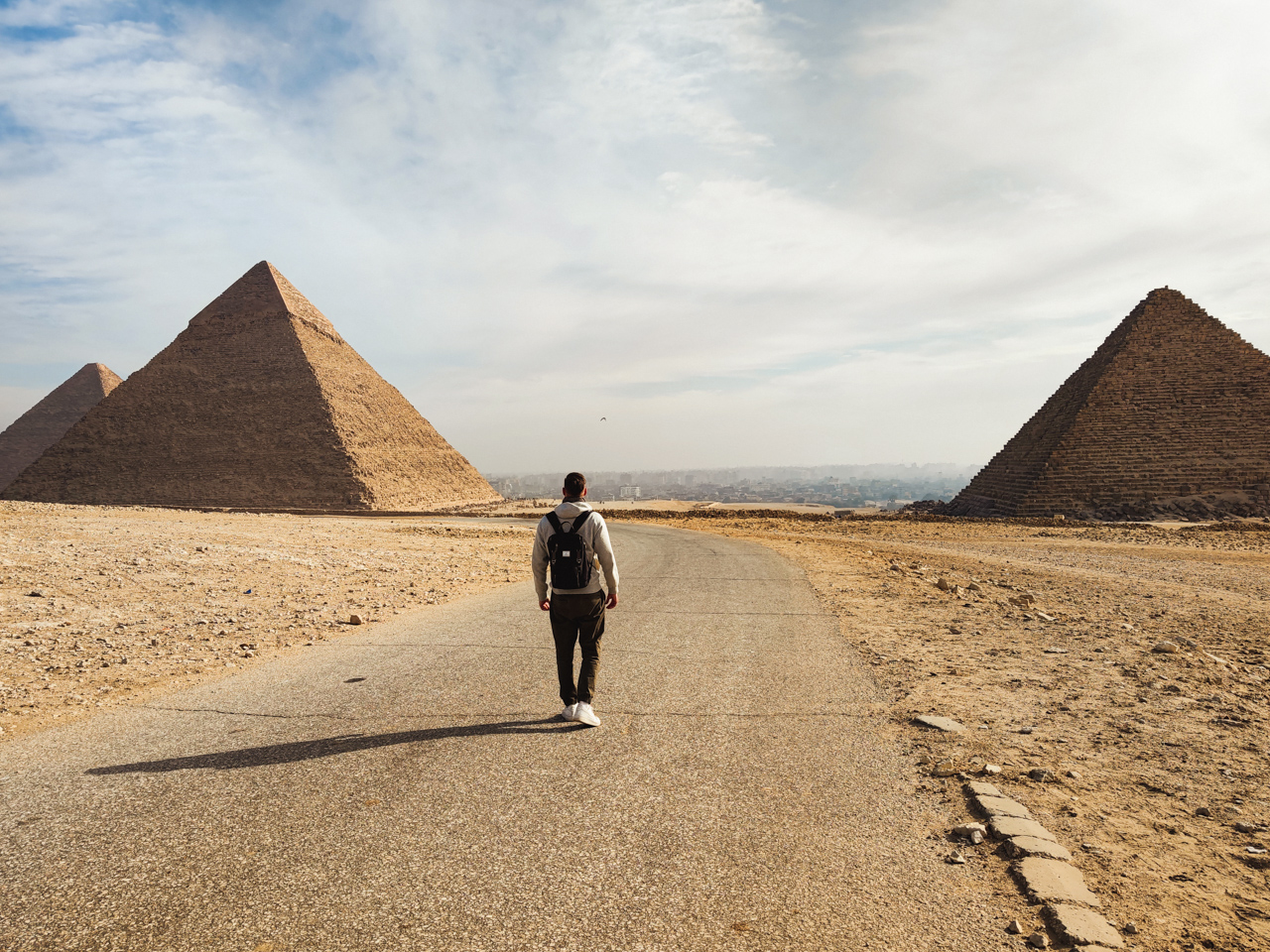 Avec l’épidémie de COVID encore très vivace partout dans le monde. Le choix de transport entre la Chine et la France s’est réduit comme peau de chagrin. Depuis la ville de Hangzhou seules quelques rotations, aléatoires persistent. Je repère une liaison Hangzhou Le Caire puis le Caire Genève qui me permettra de résoudre mon problème de retour mais qui nous ouvre les portes vers un nouvel univers, celui de l’Egypte. Ce pays a toujours été tout en haut de ma liste et je valide donc cette option pour un vol en fin d’année. Après un long vol de nuit depuis Hangzhou, j’arrive aux aurores dans la capitale de l’Egypte.