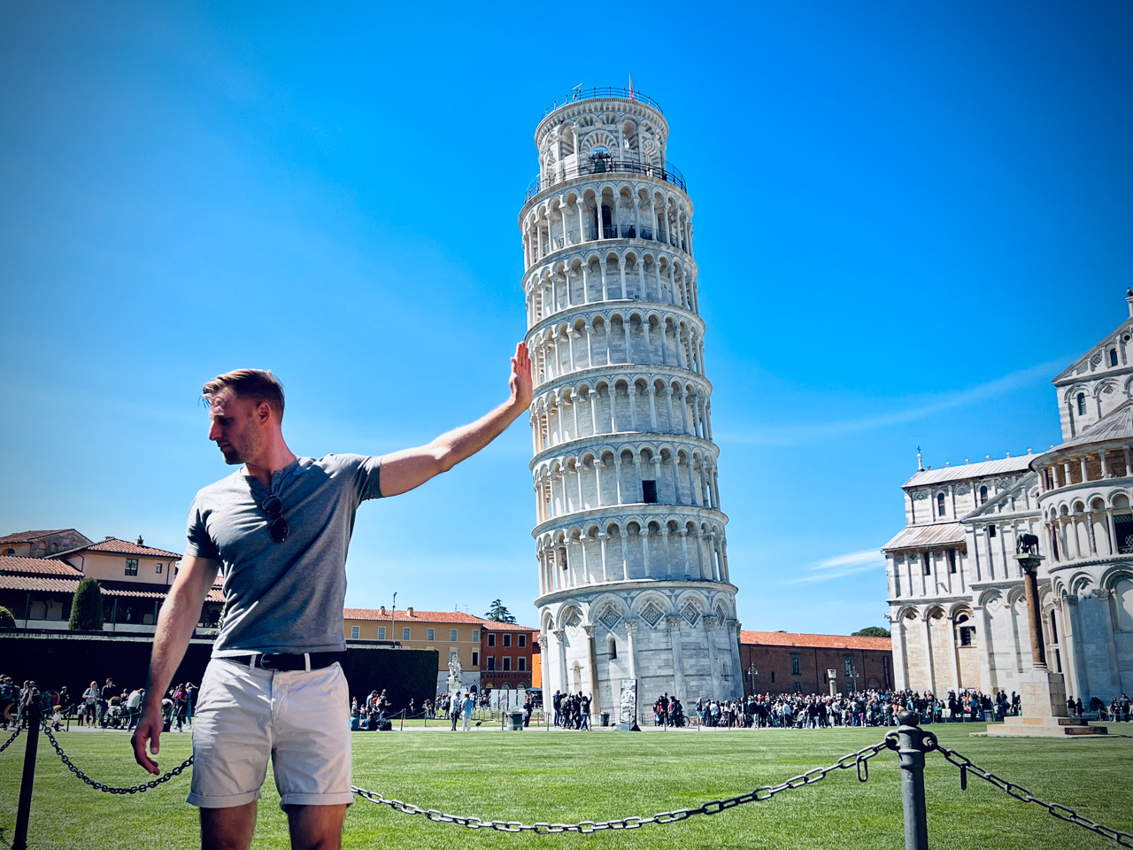 C’est sur la Piazza dei Miracoli que l’on peut admirer les plus beaux monuments de la ville de Pise. Si il y a bien un monument qui est connu dans le monde entier et qui représente le mieux l’Italie à l’international, c’est bien la tour de Pise qui penche depuis sa construction et qui attire les touristes comme nous pour voir cela de leurs yeux et se prendre au jeu de la photo stupide. Comme les monuments sont assez concentrés, on a le temps de continuer la journée en descendant plus profondement dans la campagne de Toscane jusqu'à Volterra.